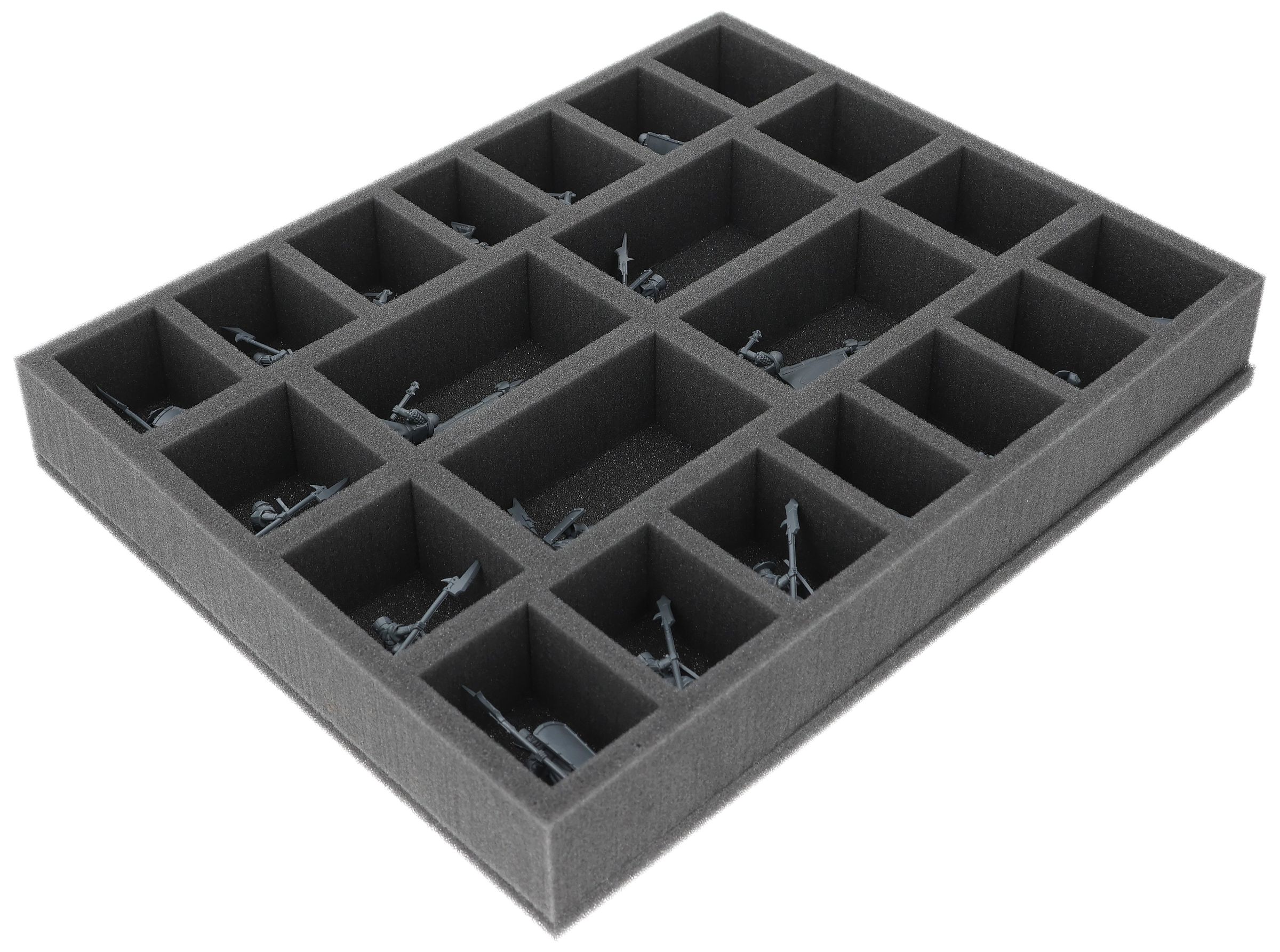Su questo Feldherr Vassoio per schuma c'è spazio per un massimo di 22 miniature del vostro esercito. L'inserto è particolarmente adatto a contenere fanteria, portatori di stendardi e modelli di dimensioni simili.