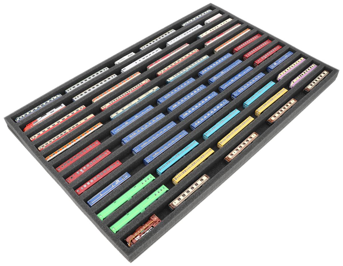 Sicherer Schutz für deine Spur Z Modelle: Die Feldherr Schaumstoffeinlage mit 12 Fächern bewahrt Loks und Waggons liegend und griffbereit auf - ideal für Transport oder Lagerung in 60 x 40 Euroboxen