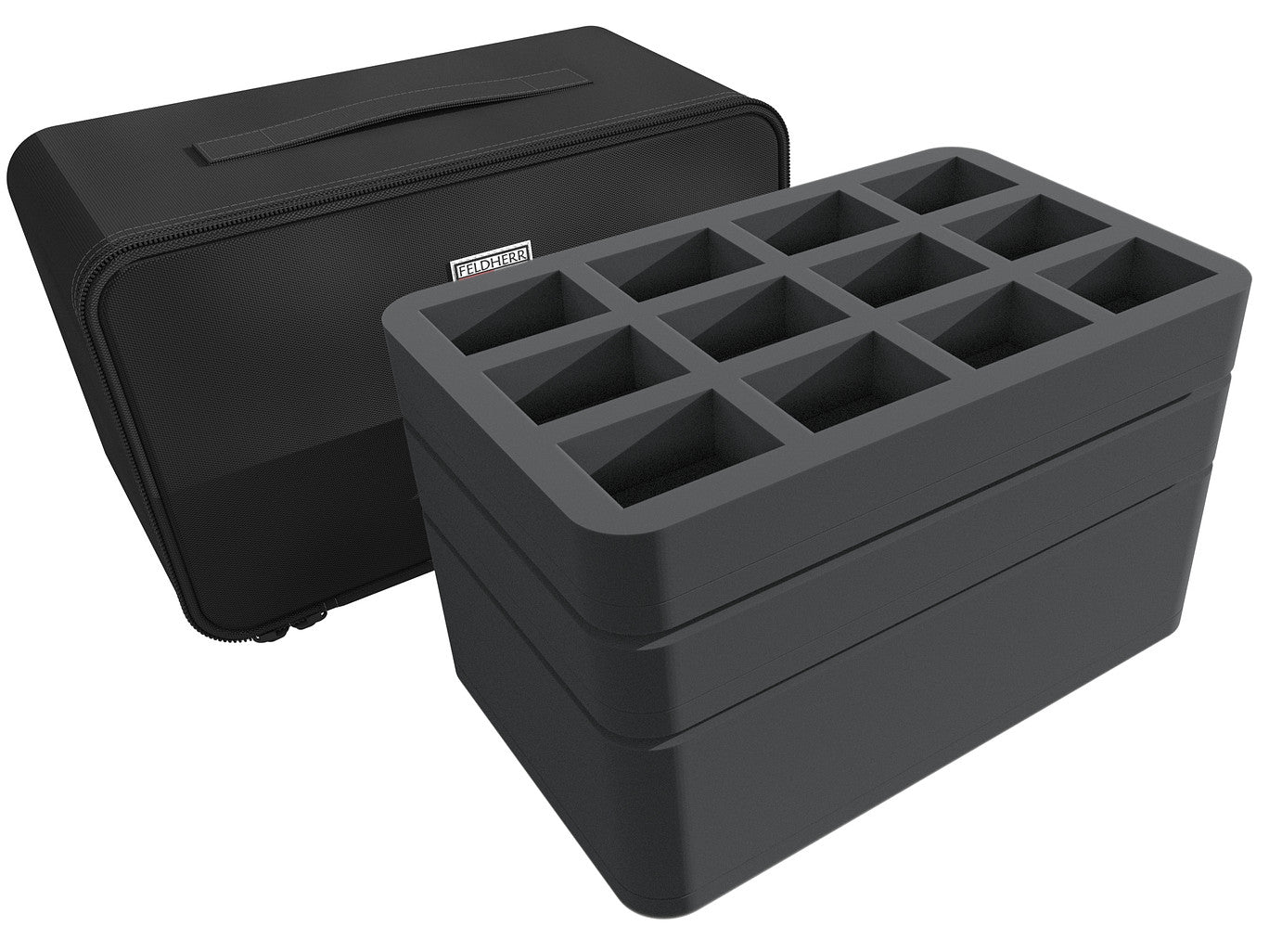 Indywidualnie dopasowane, wycięte przegródki niezawodnie chronią Twoje miniatury przed uszkodzeniem i zapewniają, że dotrą one nieuszkodzone na blat stołu. Jeśli pomalowałeś swoje figurki, możesz mieć pewność, że miękka pianka zachowa kolory Twoich modeli i zapobiegnie ścieraniu się farby.