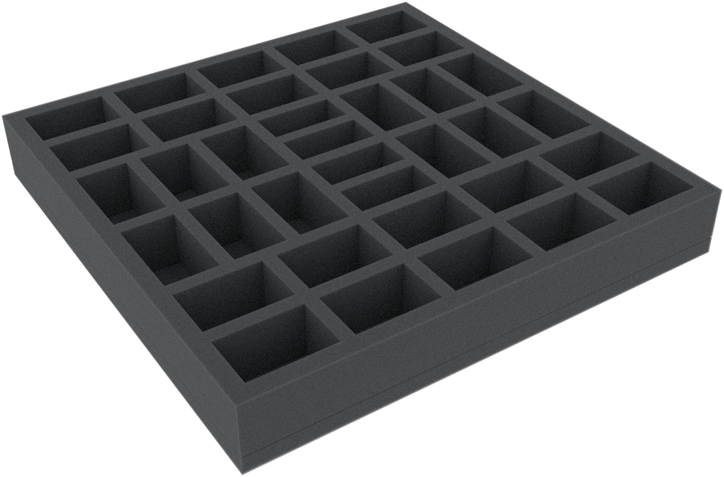 Wkładka piankowa podzielona jest na 36 przedziałów. Szczególnie nadaje się jako wkładka do bezpiecznego przechowywania miniatur i materiałów do gier w oryginalnych pudełkach do gier planszowych (np. FFG).