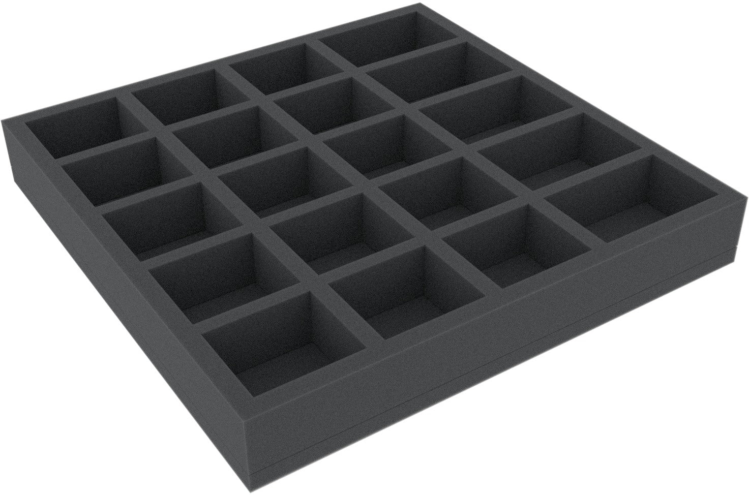 Wkładka piankowa podzielona jest na 20 przedziałów. Szczególnie nadaje się jako wkładka do bezpiecznego przechowywania miniatur i materiałów do gier w oryginalnych pudełkach do gier planszowych (np. FFG).