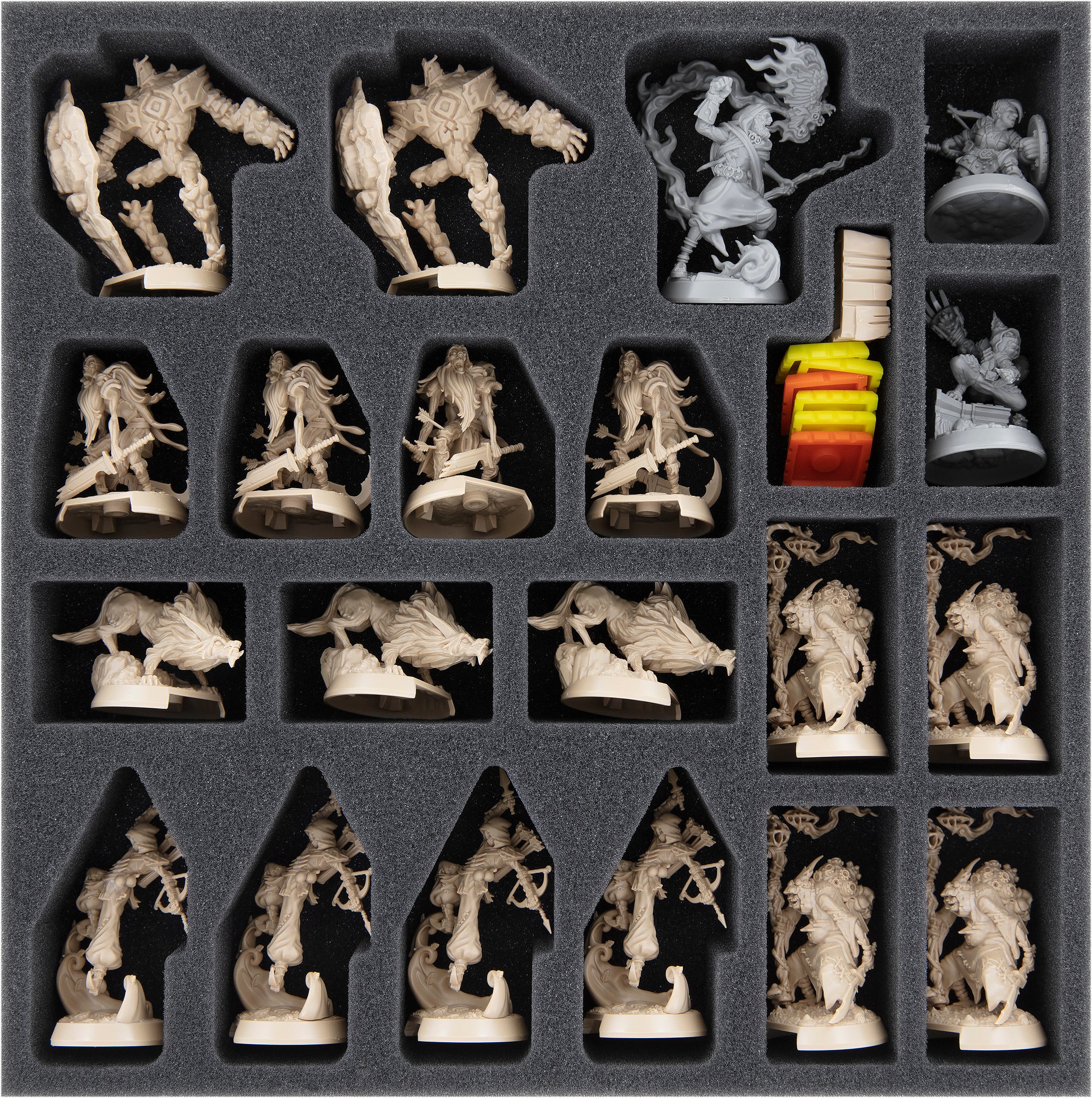 - Zapewnia miejsce dla wszystkich 40 figurek, 47 elementów terenu i kompletnych akcesoriów z gry podstawowej.