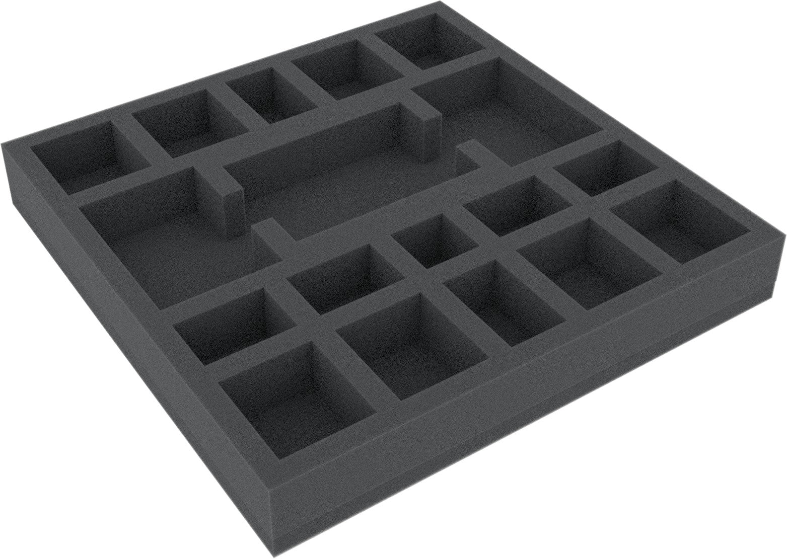 Aby upewnić się, że twoje pudełko nie wygląda na to, że Bol'Gorteth złożył ci wizytę, prezentujemy zestaw półek z pianki do oryginalnego Descent: Podróże w ciemnej 2. edycji - pudełko z grami planszowymi Trollfens. Zestaw składa się z jednej półki z pianki o wymiarach 247 mm x 247 mm x 35 mm wysokości, która dokładnie pasuje do pudełka. Dodatkowo, jest też pasujący topper. Oba są wykonane z pianki bezchlorowej i bezkwasowej.