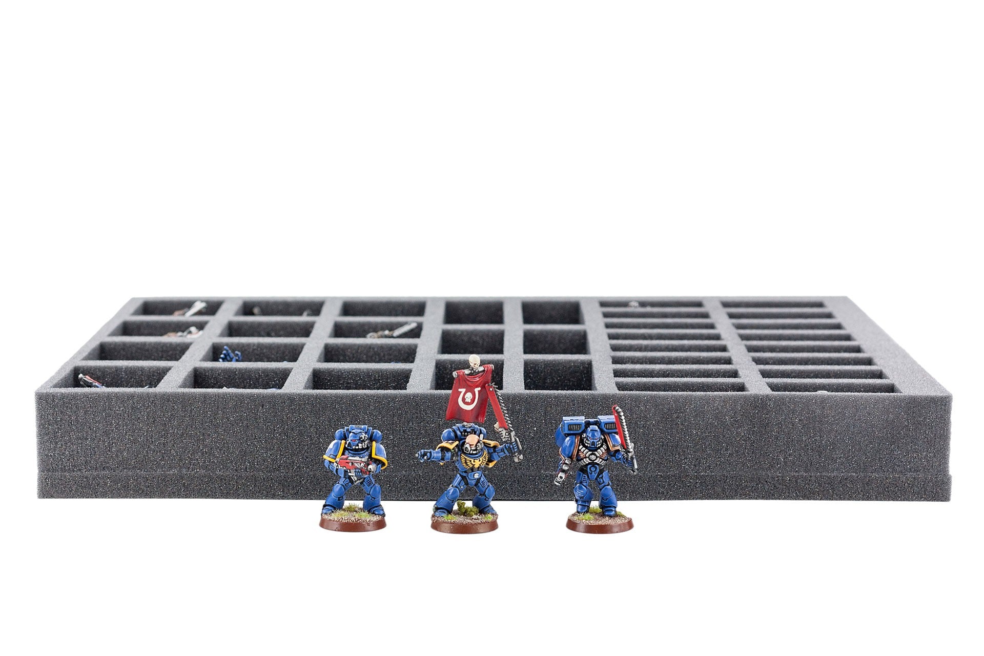 Ta taca z pianki ma 34 przegródki o różnych rozmiarach. Idealny dla nieporęcznych miniatur lub materiałów do gry.