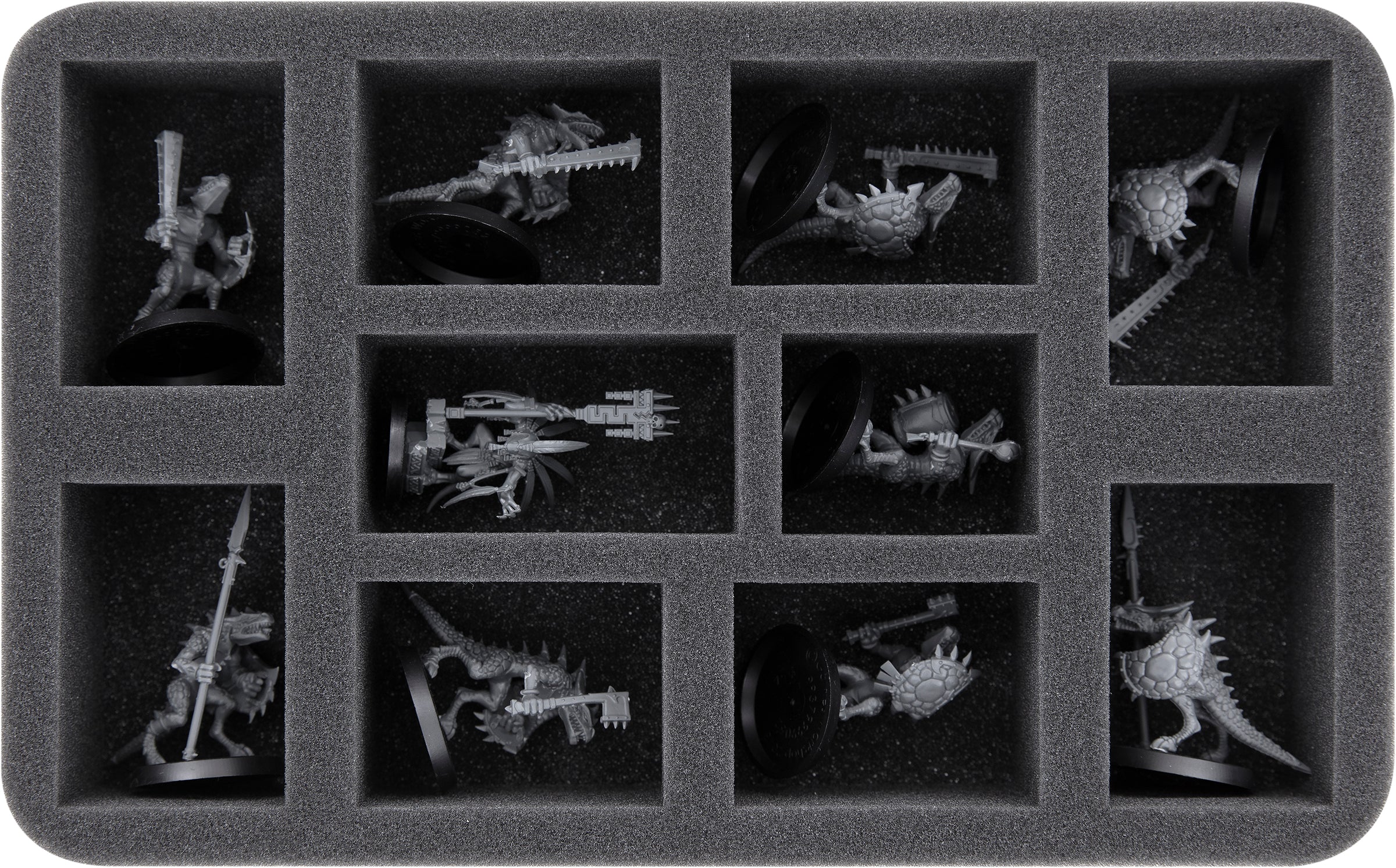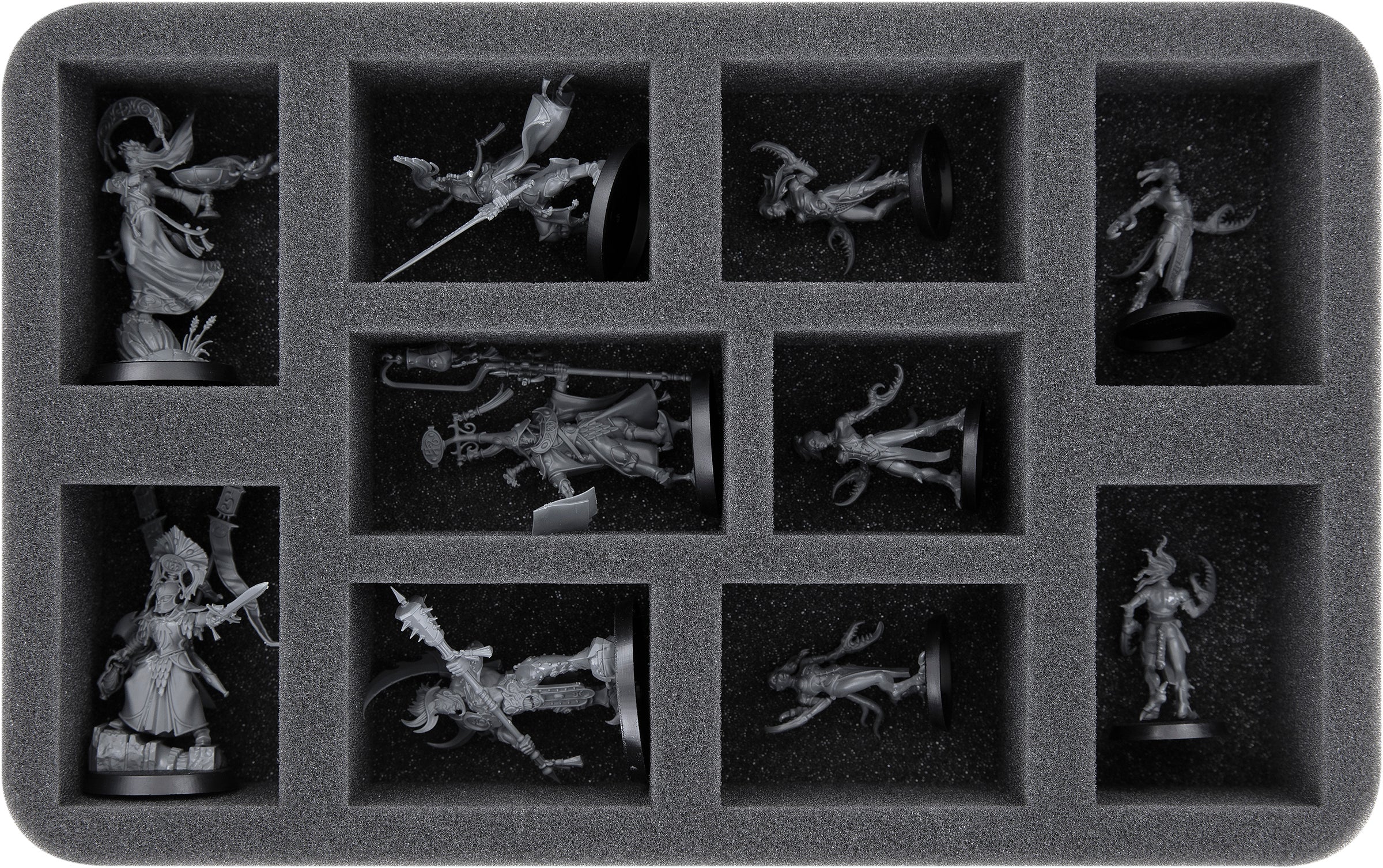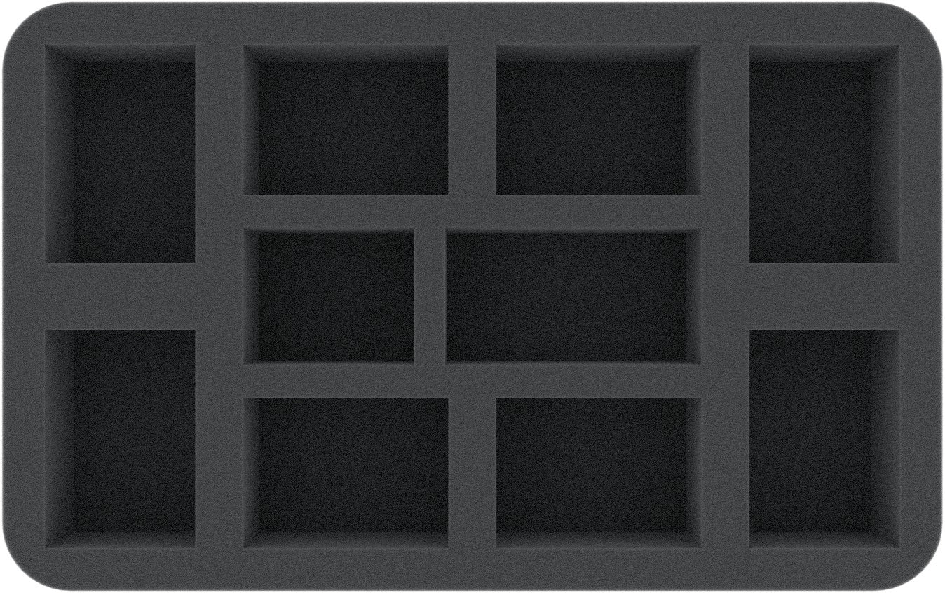 Na tej podstawce z pianki Feldherr masz miejsce na 10 figurek swojej armii. Wkładka nadaje się szczególnie do przechowywania Scinari Loreseeker, Scinari Calligrave, Scinari Cathallar i podobnych rozmiarów modeli.