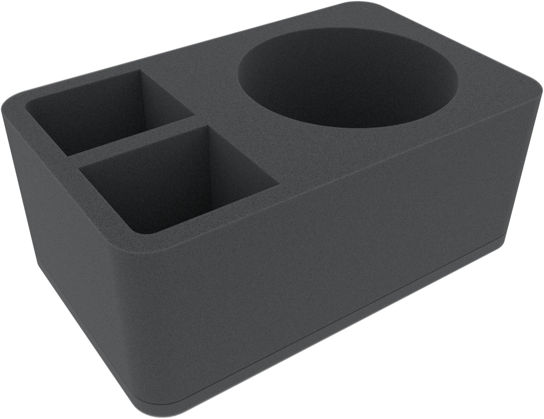 Ta półwymiarowa taca z pianki posiada 3 przegrody o różnych rozmiarach, jedną dużą okrągłą przegrodę i dwie prostokątne przegrody. Szczególnie nadaje się do bezpiecznego przechowywania większych miniatury do różnych gier planszowych i systemów stołowych. Materiały do gry lub inne drobne części również mogą być tu schludnie składowane.