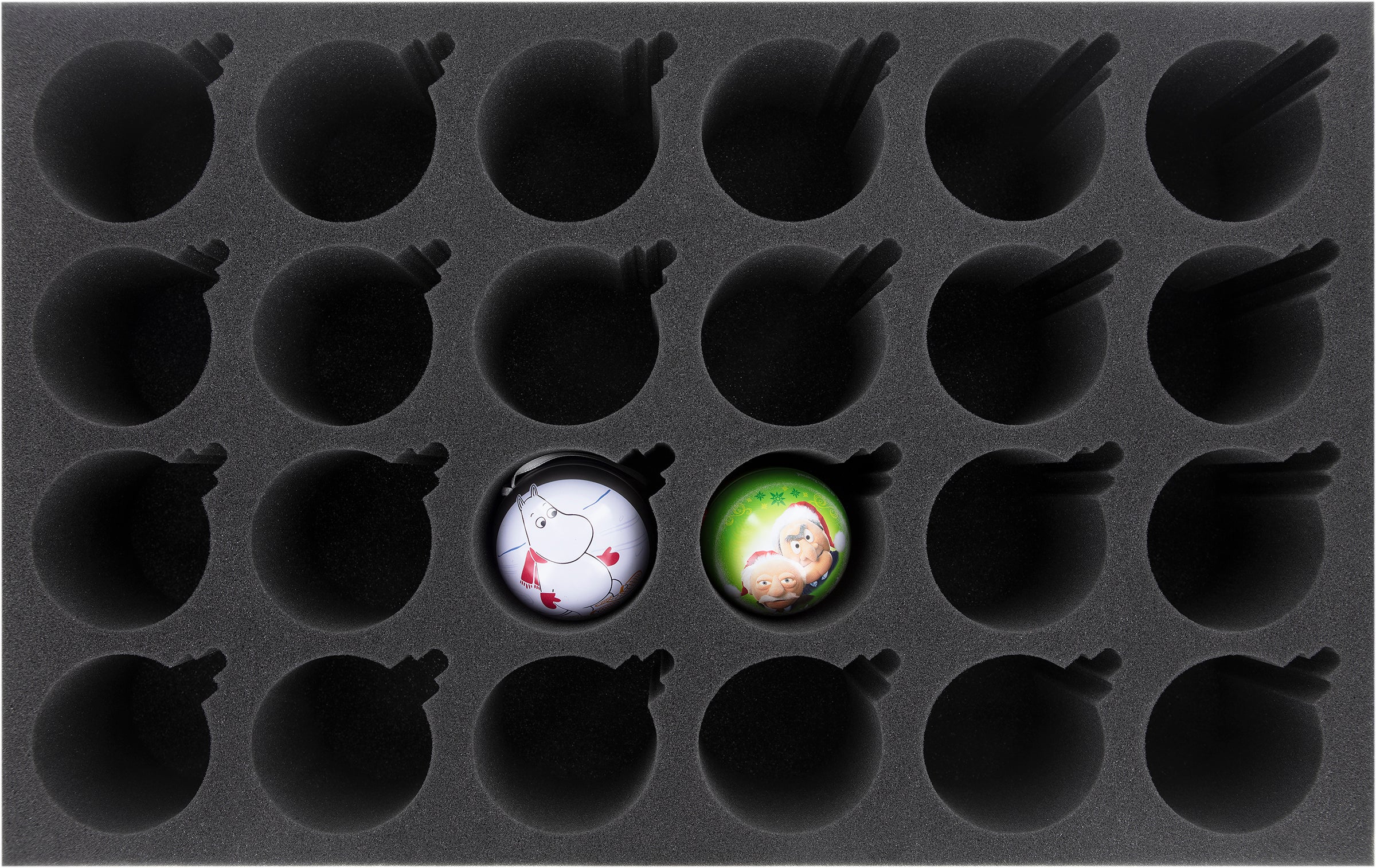 Te same kłopoty z bombkami, jak co roku? Dzięki zastosowaniu tacek z pianki Feldherr, wrażliwe kulki dekoracyjne przetrwają przechowywanie i transport bez uszkodzeń. 24 bombki o średnicy 70 mm każda umieszczane są w miękkiej piance. Nawet spadające z dużej wysokości kulki przetrwają bez problemów. Dlatego należy zachować ostrożność tylko przy ich zawieszaniu i zdejmowaniu.