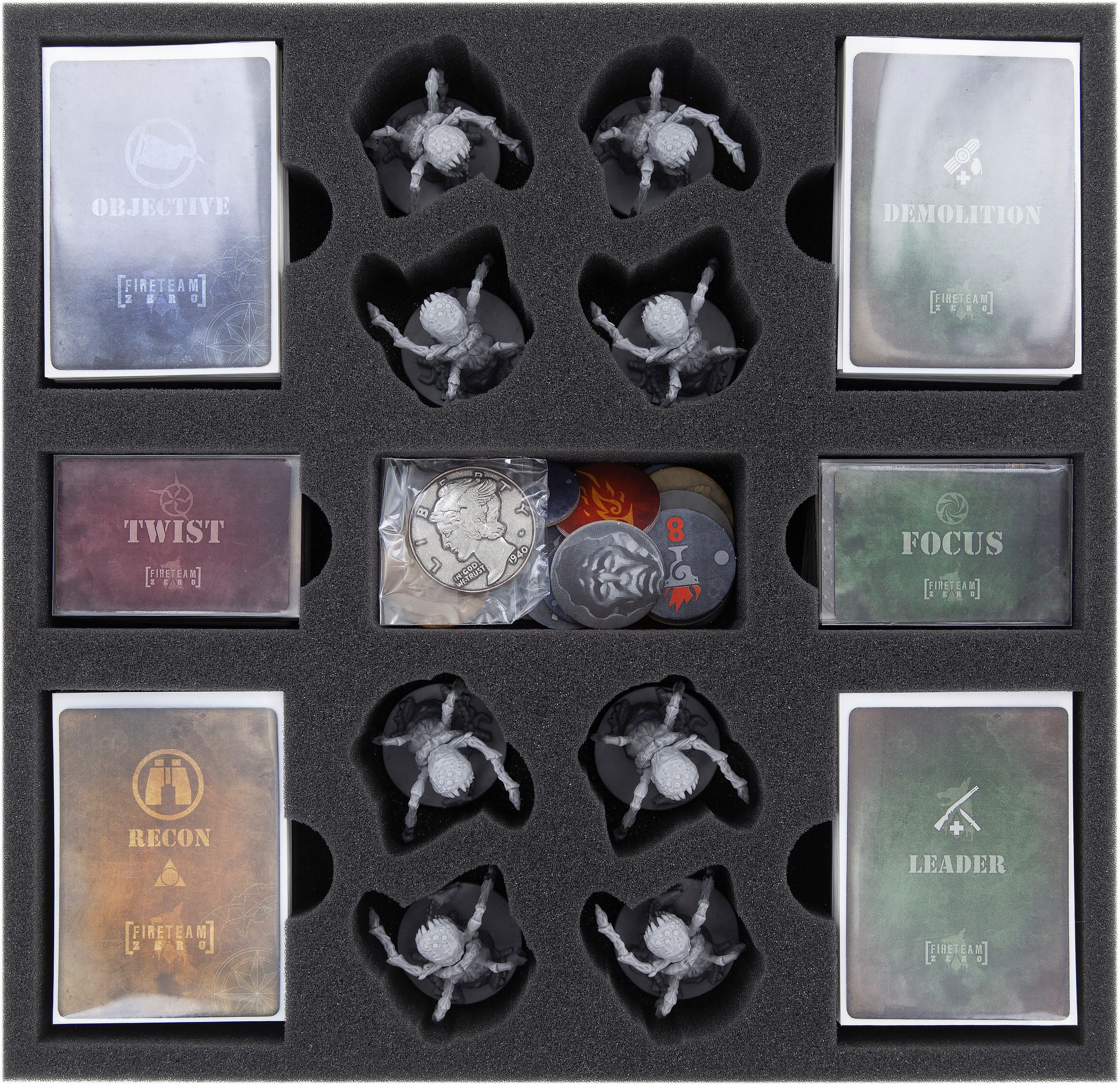 Odpowiedni topper pianki uzupełnia wszechstronną opiekę dla Fireteam Zero gry planszowej. Na nim umieszczono 8 płytek sektorowych, Ścieżkę zagrożenia, Zestaw Zasad, podręcznik misji i płytę CD.
