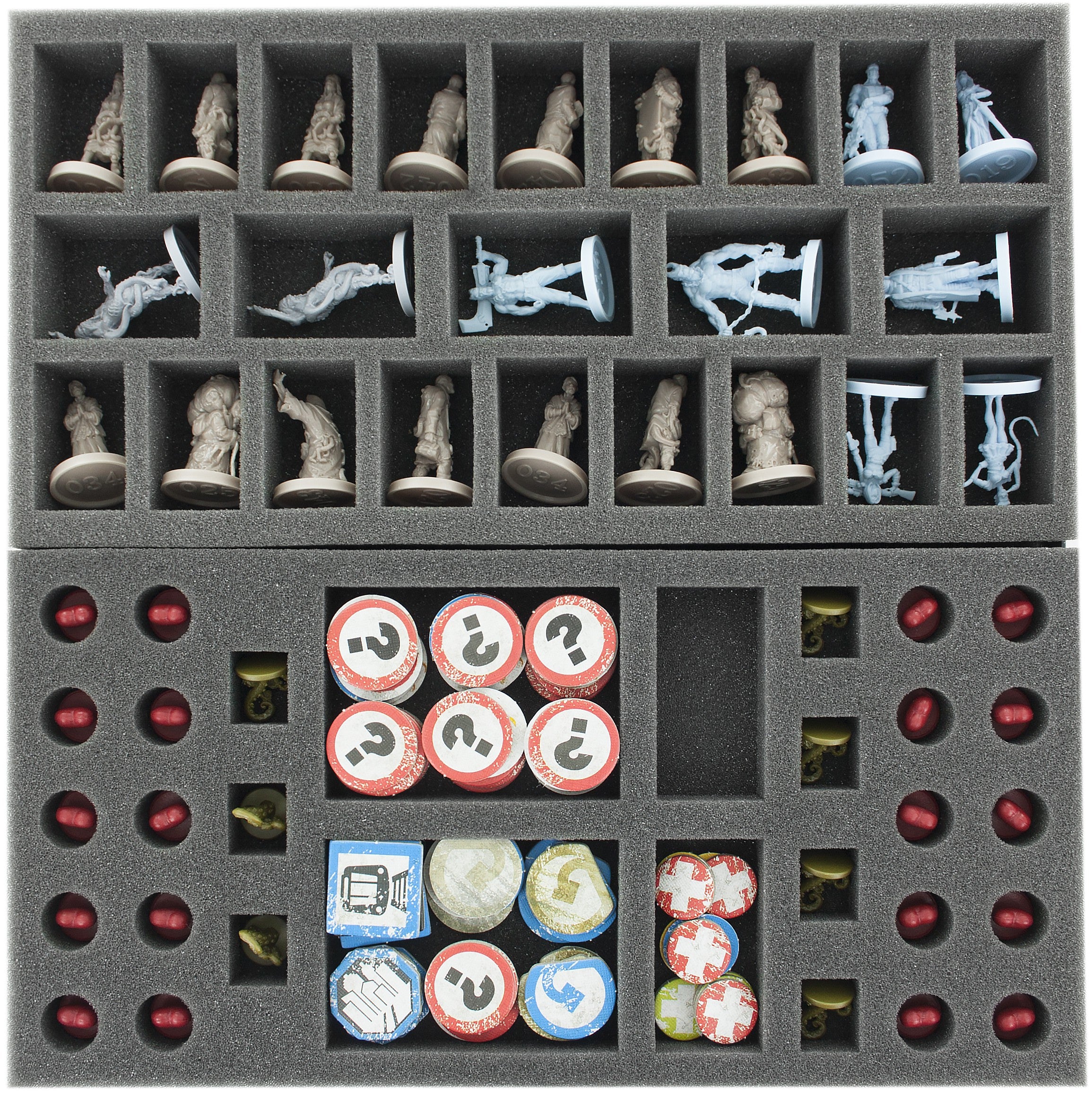 Kompletny zestaw tac piankowych do pozostałych - 7 grzechów. Miniatury z gry podstawowej Pozostałe - 7 grzechów, karty w rękawach, kości, żetony i akcesoria pasują do tacek. Zdjęcie w polu pokazuje stan, kiedy cała gra znajduje się w polu gry planszowej! P>