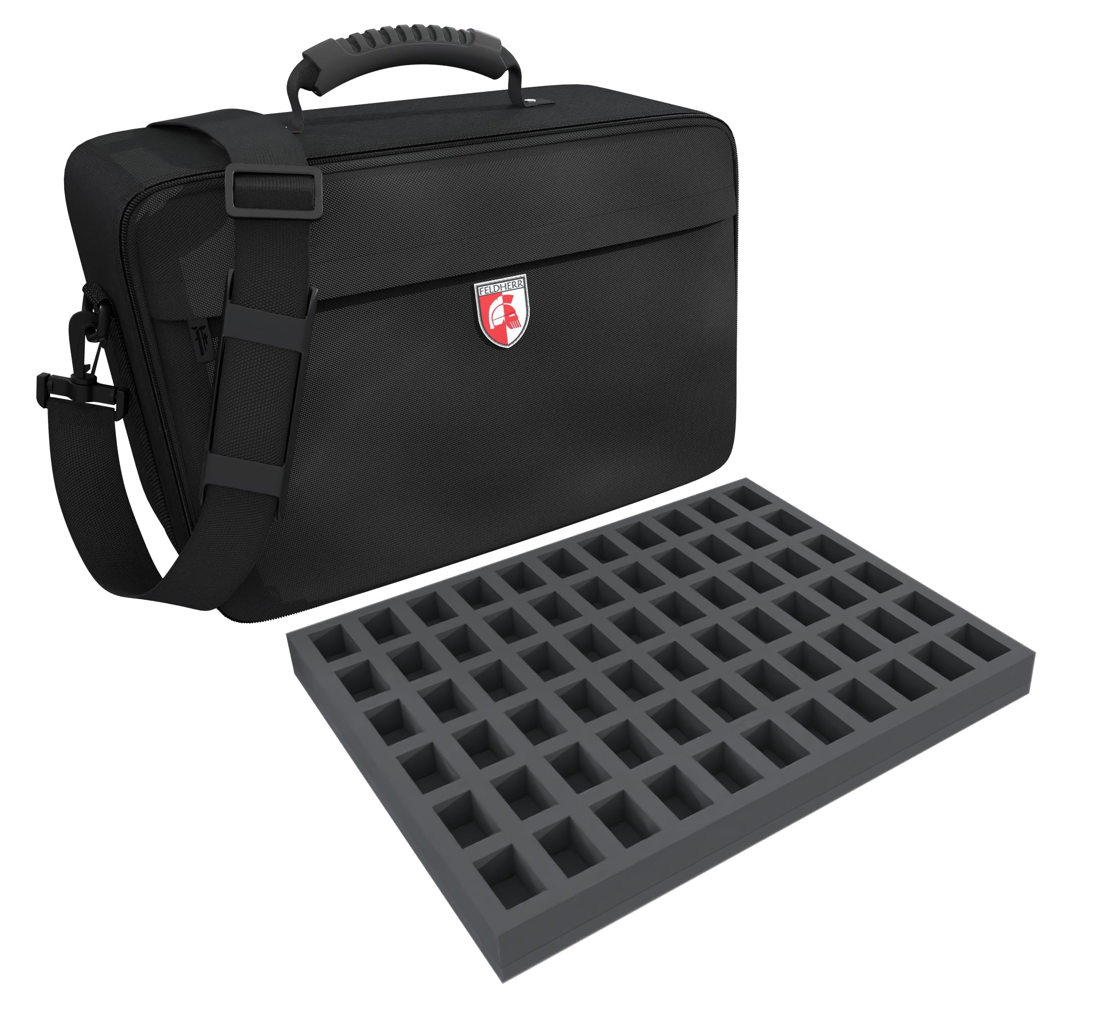 Twoje miniatury są optymalnie chronione w tej torbie MAXI PLUS z dopasowanymi wkładkami z pianki Feldherr. Może być używana do transportu do 246 miniatur stołowych w skali 1:72 (20 mm), np. do miniatur z gier Behind Omaha, Rapid Fire i Point Blank Game, modeli z historycznych scenerii i miniatur o podobnych wymiarach.