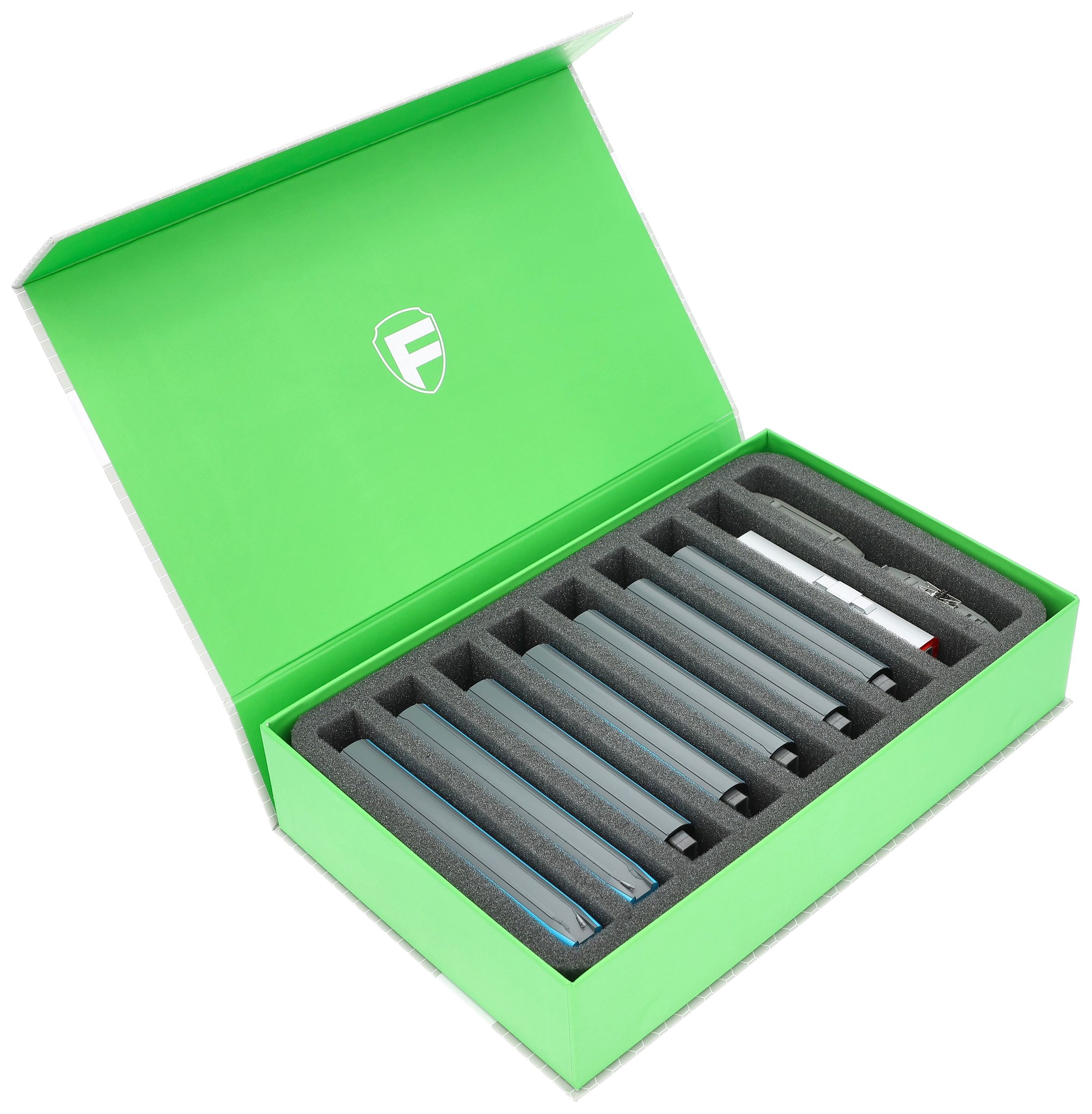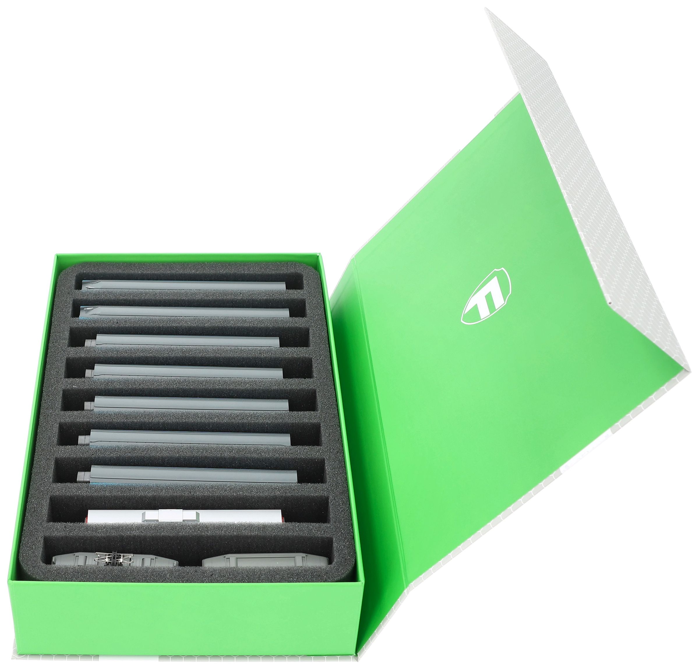 Miękkie przechowywanie i bezpieczny transport - Twoje modele są bezpieczne dzięki temu zestawowi Feldherr Magnetic Box w kolorze zielonym z jedną piankową wkładką do modeli kolejek w skali N.