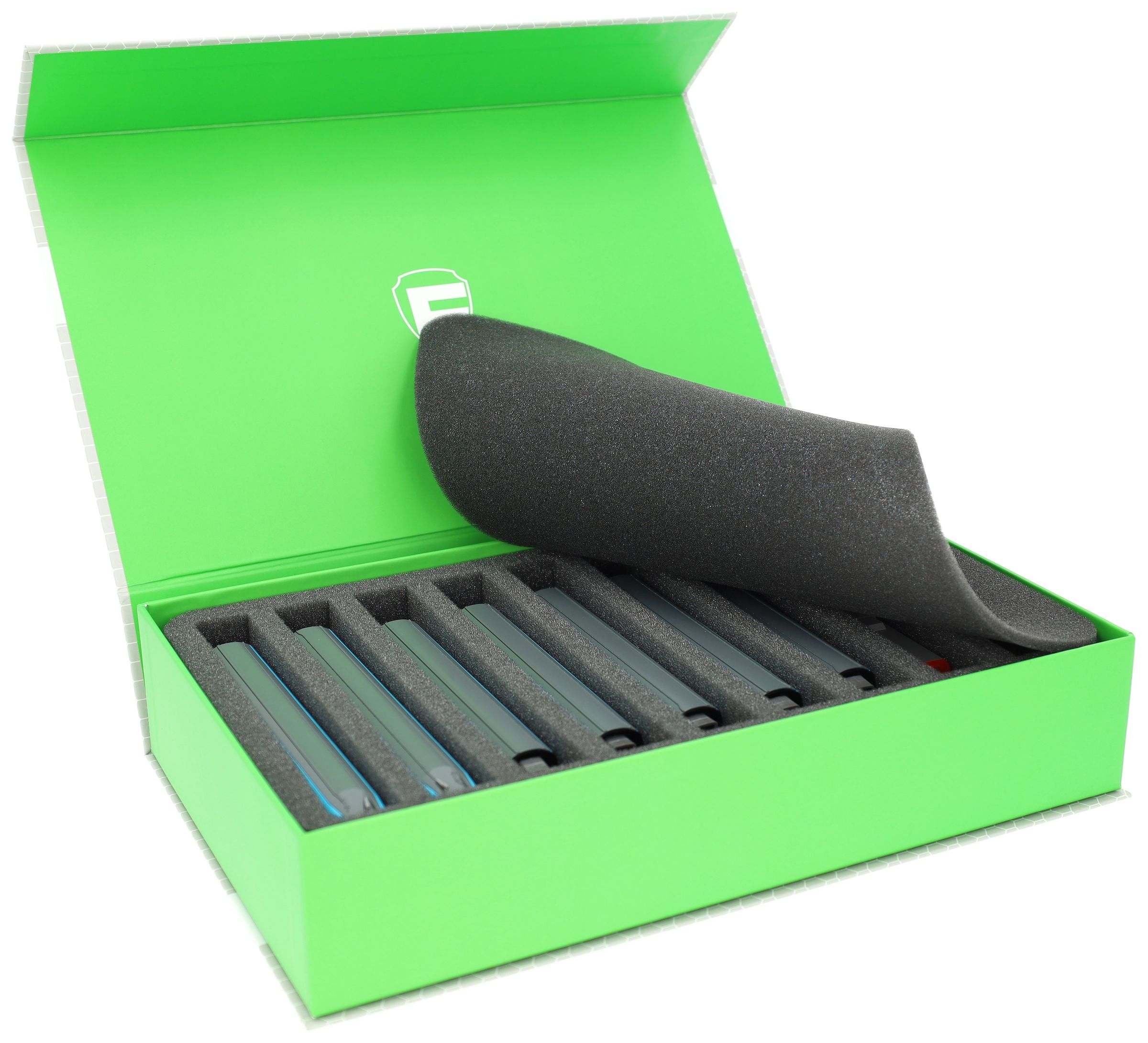 Oczywiście wkładka pasuje dokładnie do kompaktowego Magnetic Box. Dzięki niewielkiej wadze jest to optymalne rozwiązanie do przechowywania i transportu. Pudełko wykonane jest z wytrzymałej, powlekanej tektury litej. Dwa wbudowane magnesy z przodu pozwalają na bezpieczne i łatwe zamknięcie, dzięki czemu nic nie zginie podczas transportu.