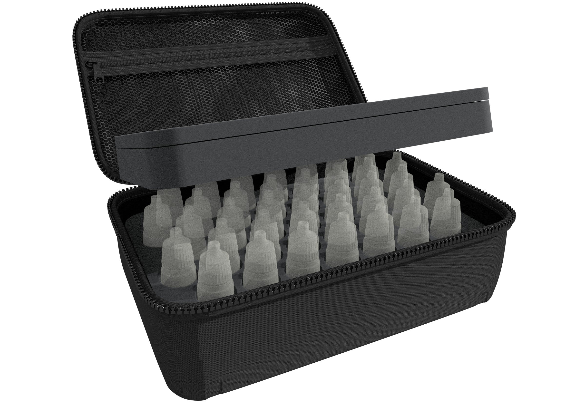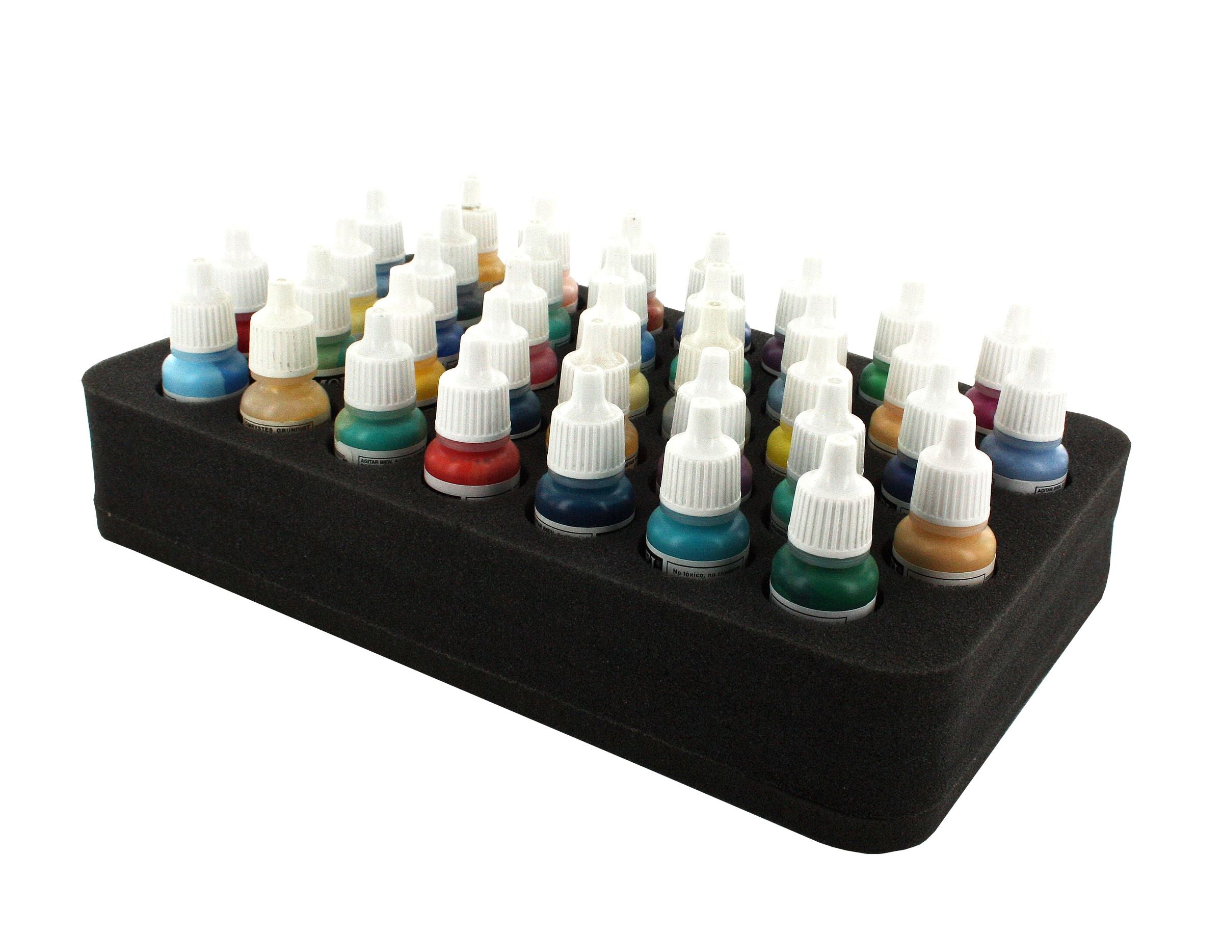 Można tu przechowywać do 37 kolorowych butelek modelowych w sposób przejrzysty i łatwy do transportu. Dzięki lekkości materiału wkładka z pianki jest wspaniałym dodatkiem do torby hobbystycznej.