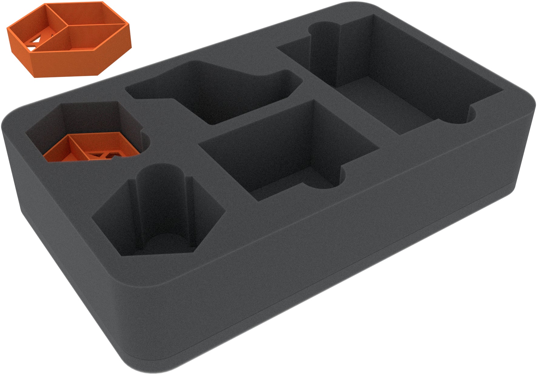 Jeśli możesz zaufać temu tajemniczemu Xenosowi, nie możemy powiedzieć. Ale że możesz nam zaufać, to już wiesz. Z tą tacą piankową Feldherr, twój model, wraz z akcesoriami, na pewno dotrze do stołu do gier bez szwanku. 3 plastikowe wkładki pomogą ci posortować znaczniki.