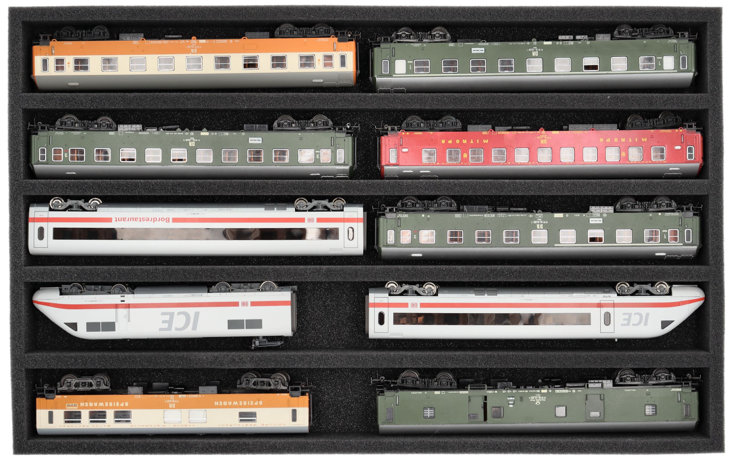 Prawidłowo przechowywane, przejrzyście zaprezentowane i bezpiecznie transportowane. Dzięki tej wkładce piankowej Feldherr Double-Size dla modeli kolejowych w H0 Gauge Twoje modele są bezpieczne.