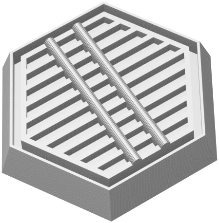 3 podstawy zostały indywidualnie zaprojektowane z myślą o terenie przemysłowym. Z siatkami, rurami i dodatkowymi szczegółami technicznymi na krawędziach, są idealne do tematycznych pól bitewnych w fabrykach lub w odległej przyszłości. Idealne do systemów gier, które wymagają sześciokątnych podstawek, takich jak Battletech.