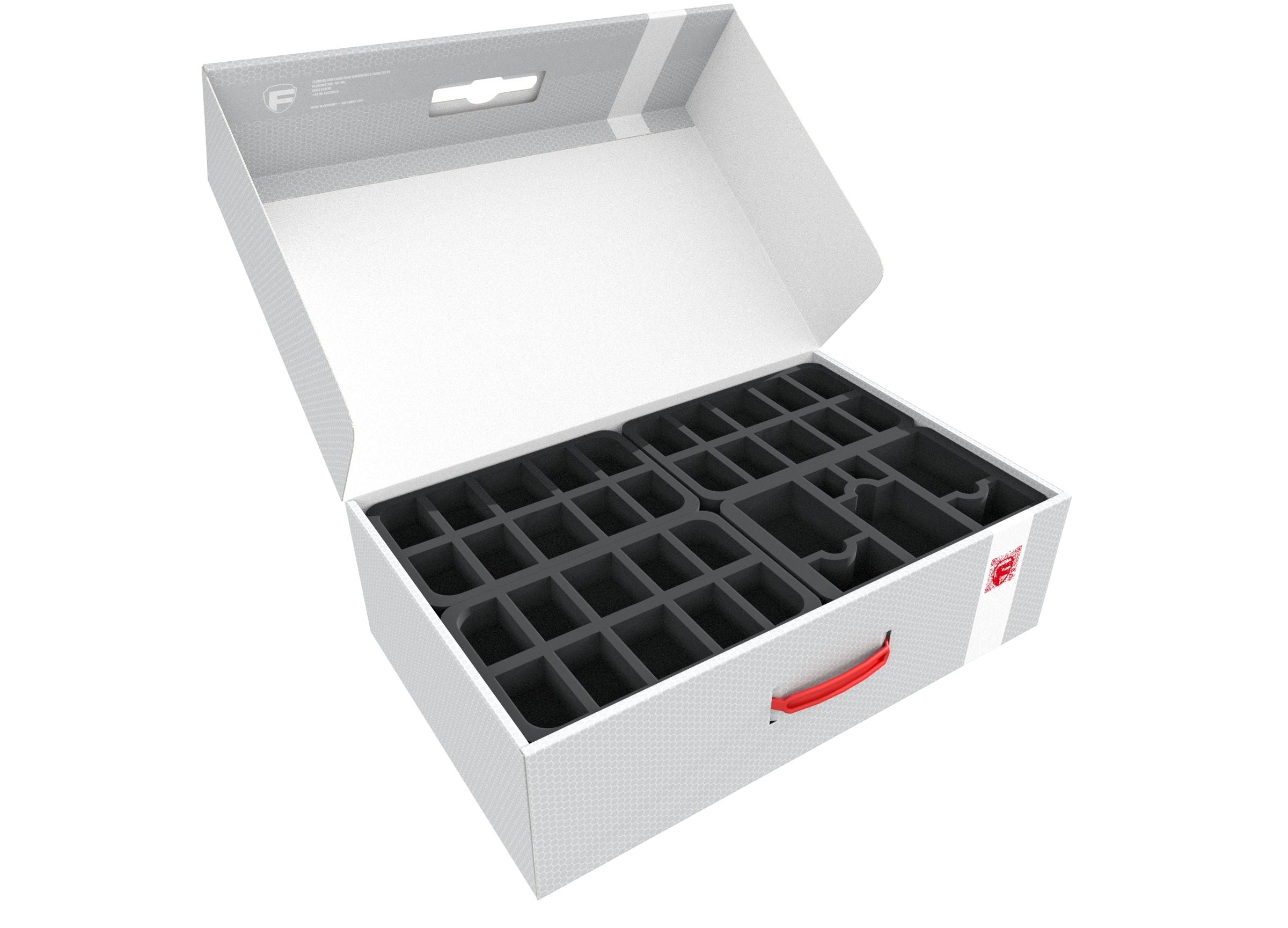 Każda figura otrzymuje tu swój własny, specjalnie wycięty przedział. Gwarantuje to, że miniatury nie będą się przesuwać ani wpadać na siebie podczas transportu. Ponadto, kolory malowanych figurek pozostają chronione przed ścieraniem i zarysowaniami.