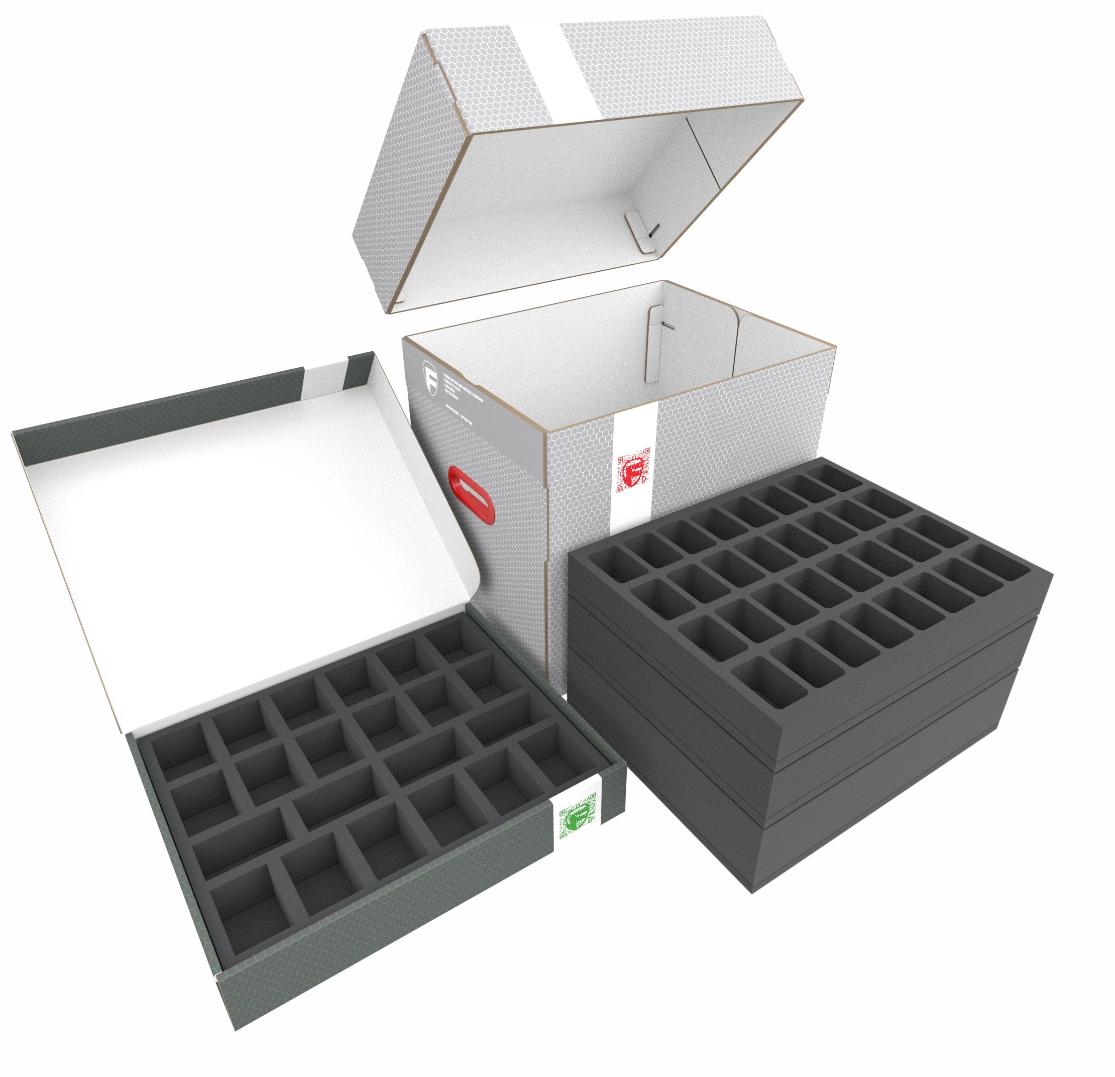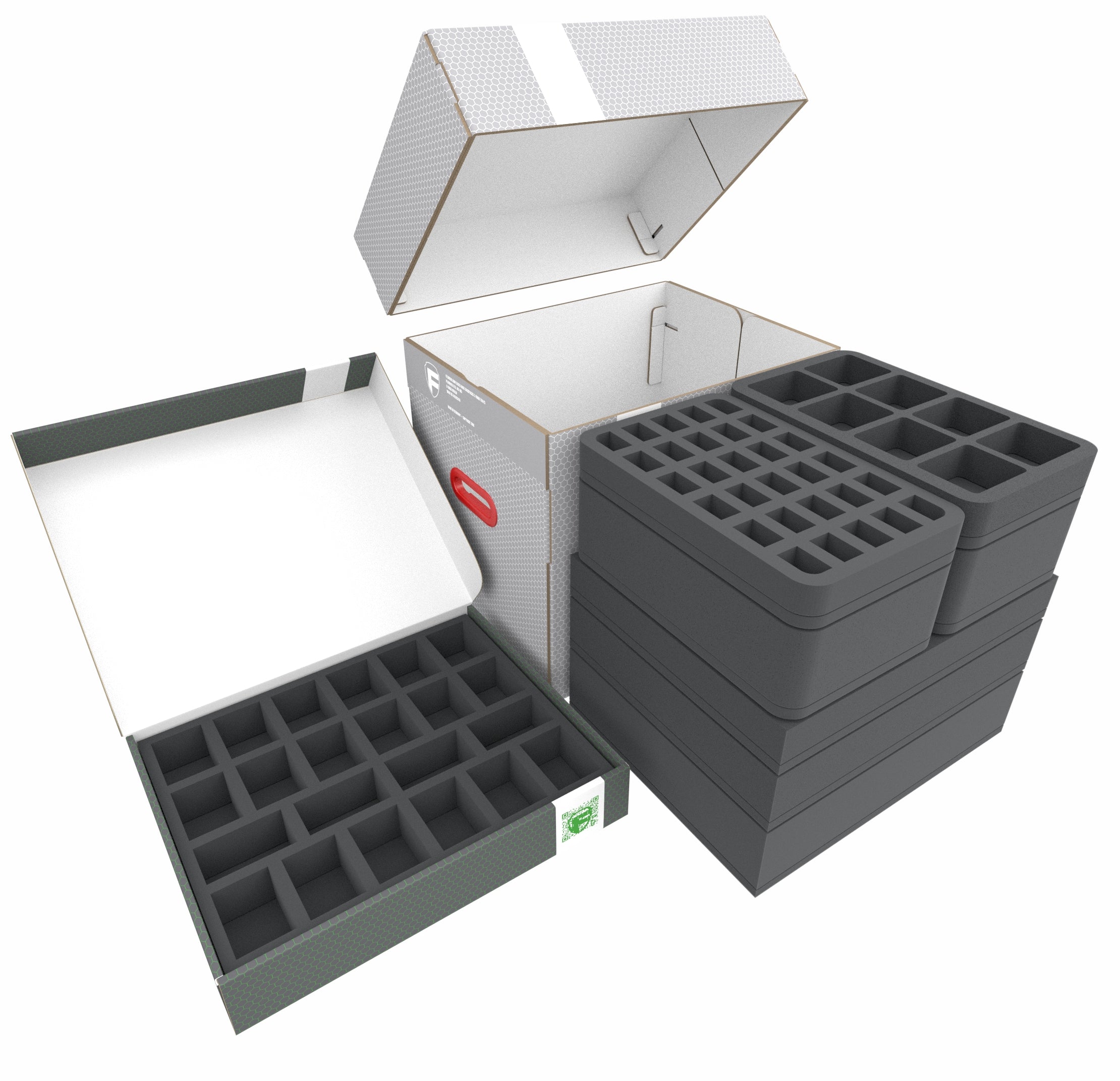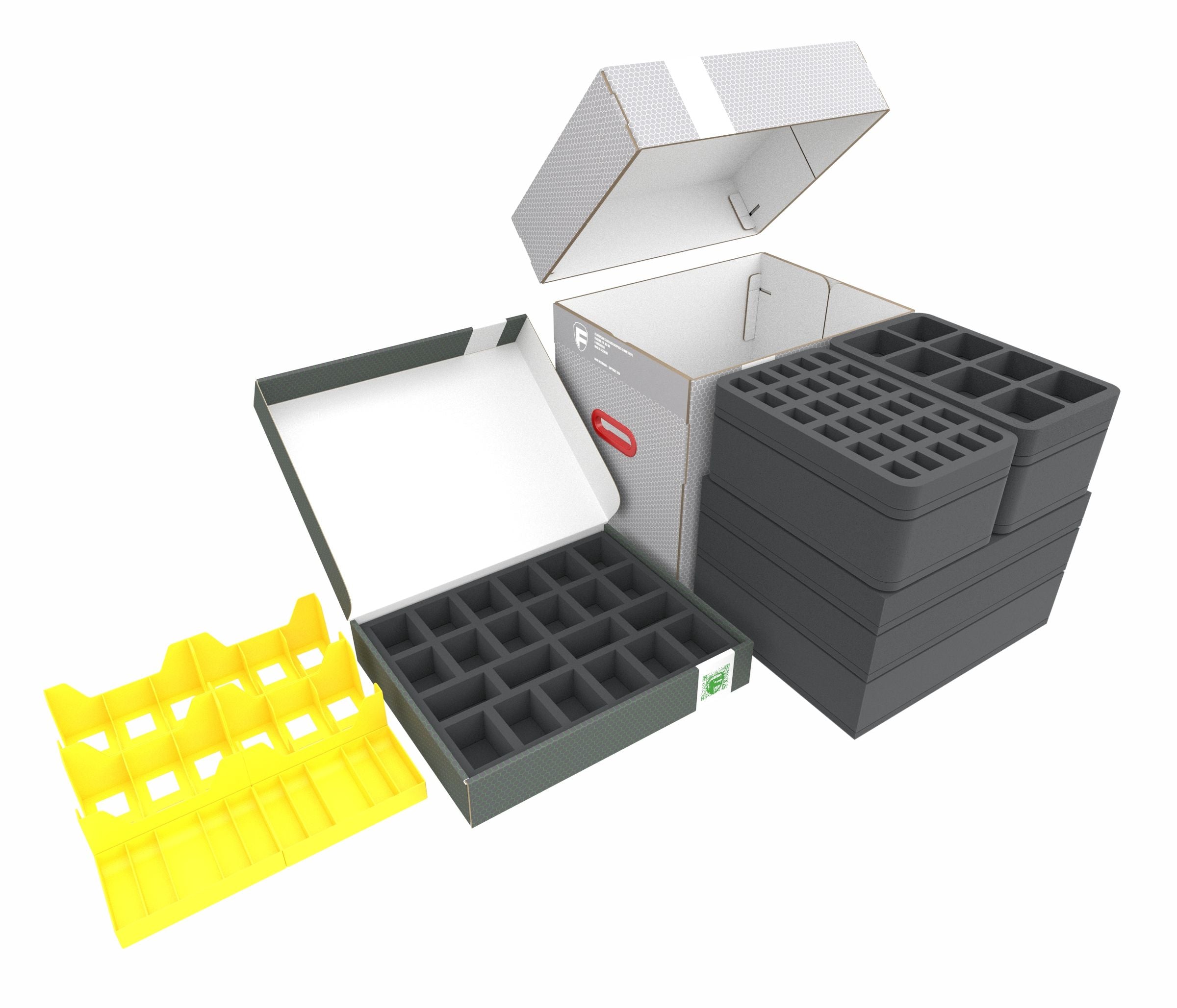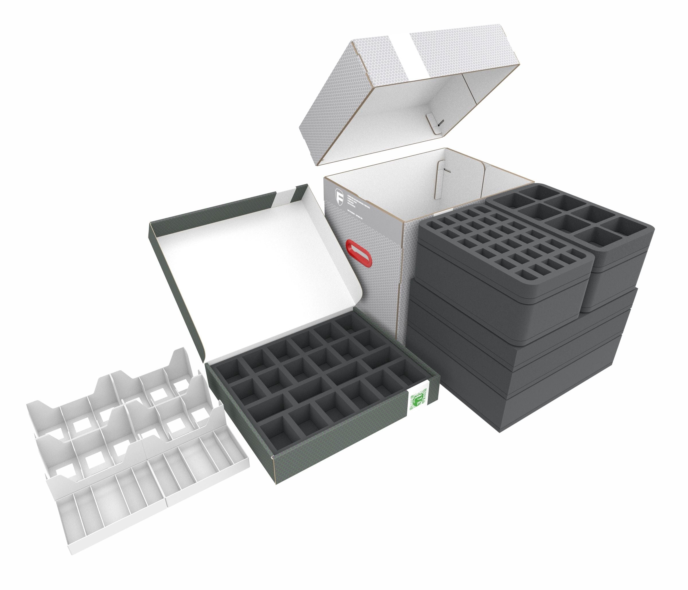 Cztery tacki piankowe Full-Size i cztery Half-Size są gotowe do bezpiecznego przechowywania figurek. Każda miniatura, czy to Hydra, czy Gnoll, ma swój własny przedział. Indywidualnie dopasowany krój niezawodnie chroni figurki przed uszkodzeniem.