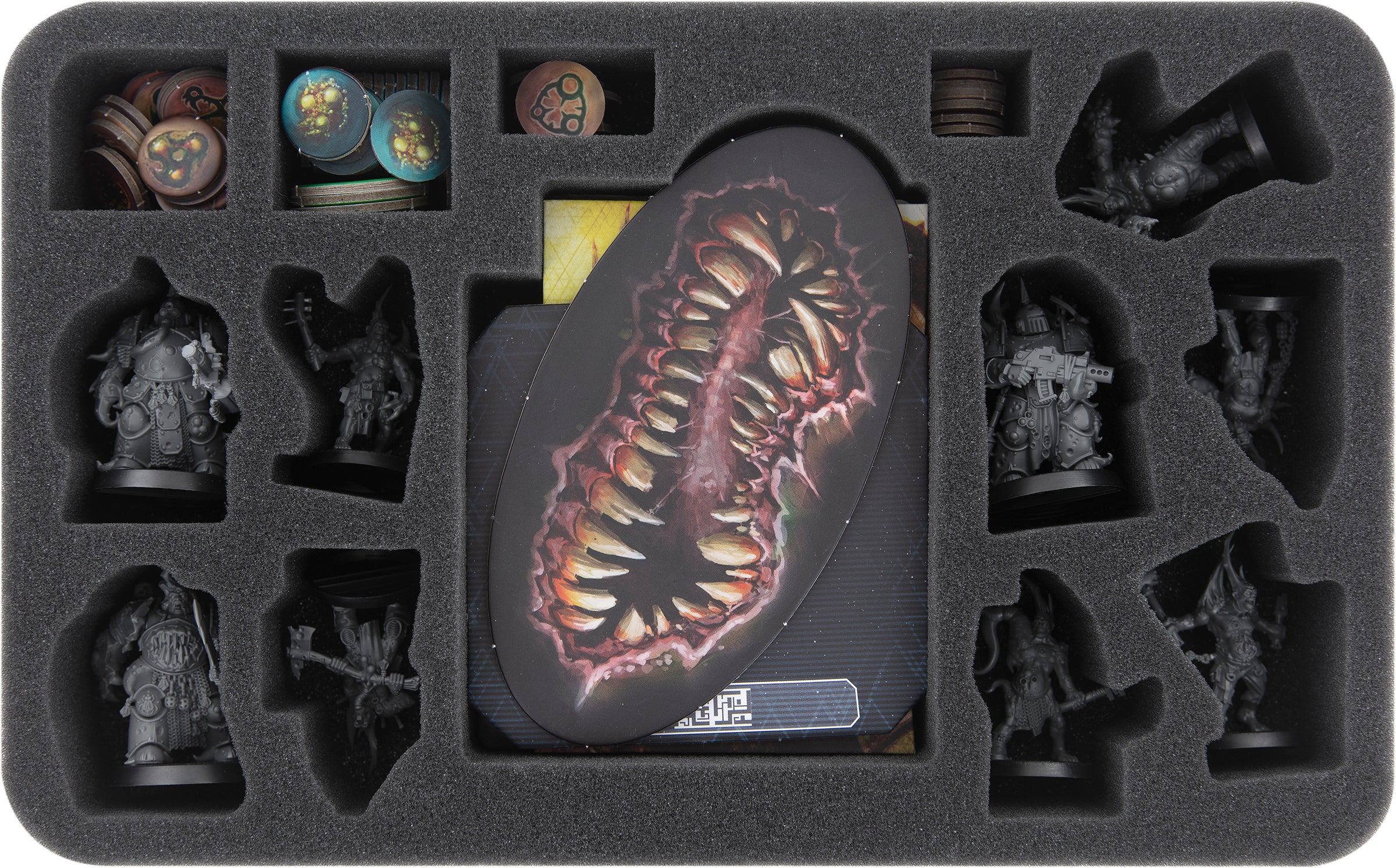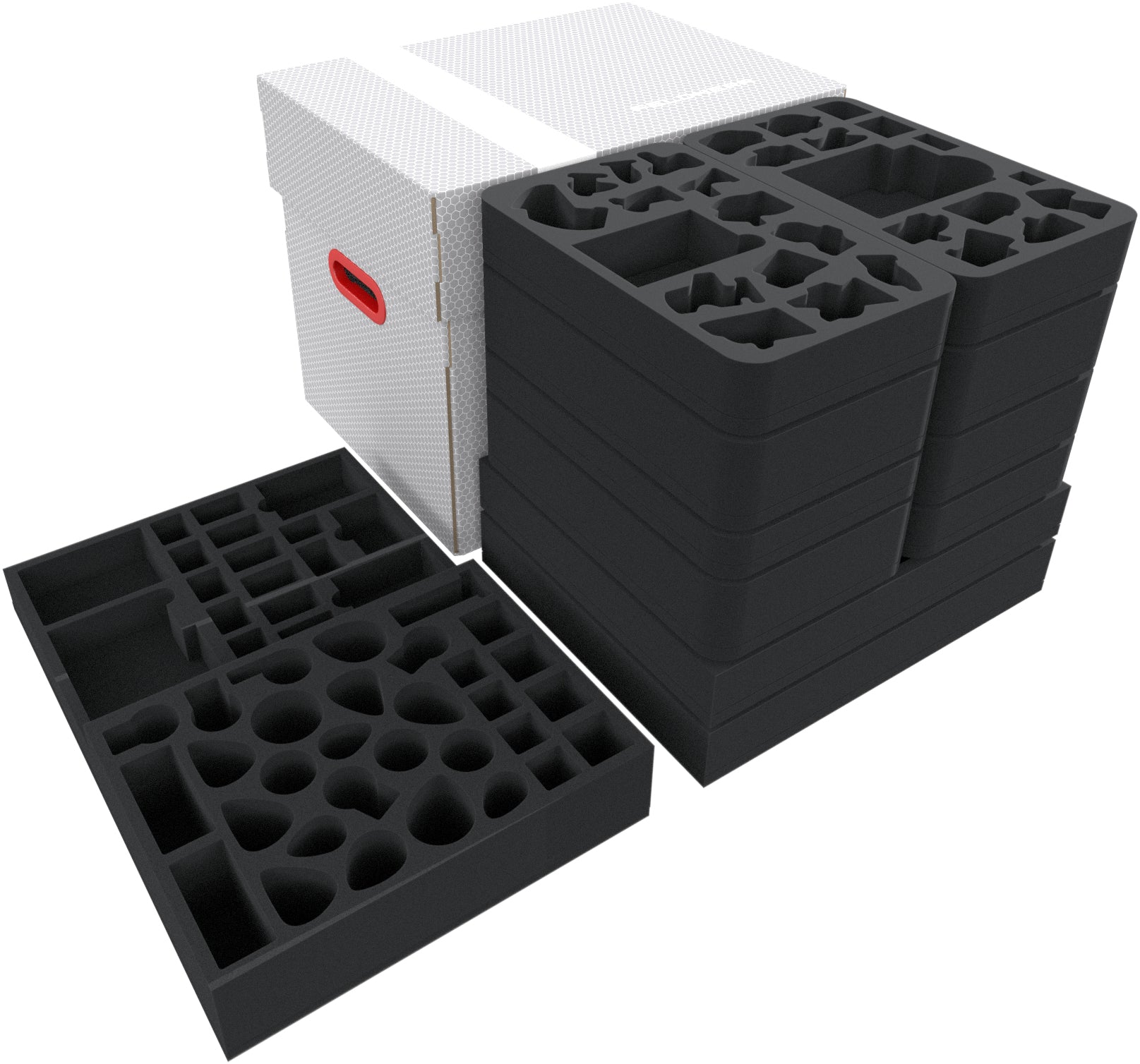 Aby Twoja kolekcja Blackstone Fortress dotarła do stołu gry w całości i w nienaruszonym stanie, Storage Box jest wypełniony dwoma wkładkami z pianki Full-Size i ośmioma wkładkami z pianki Half-Size, dostosowanymi do Twojej kolekcji.