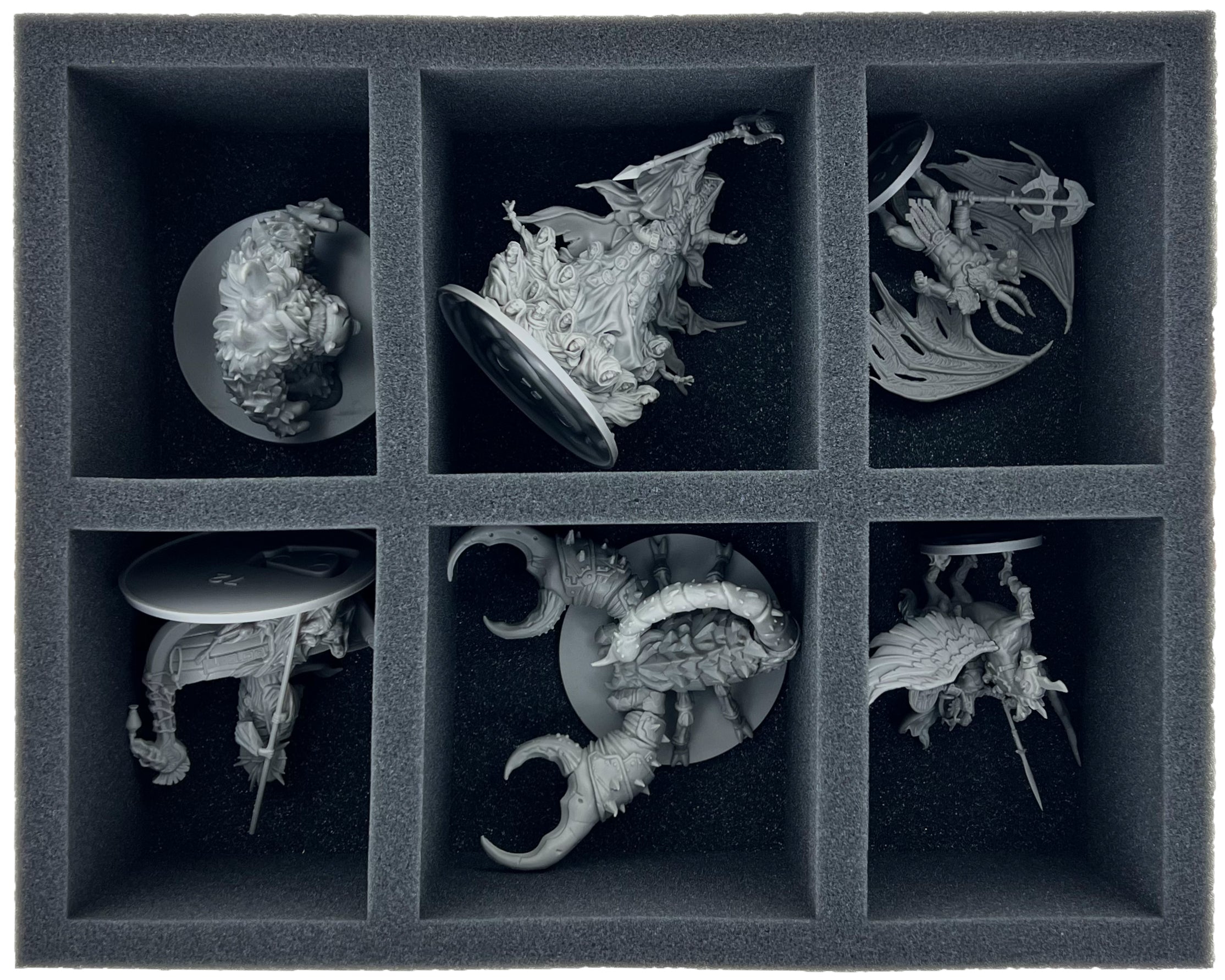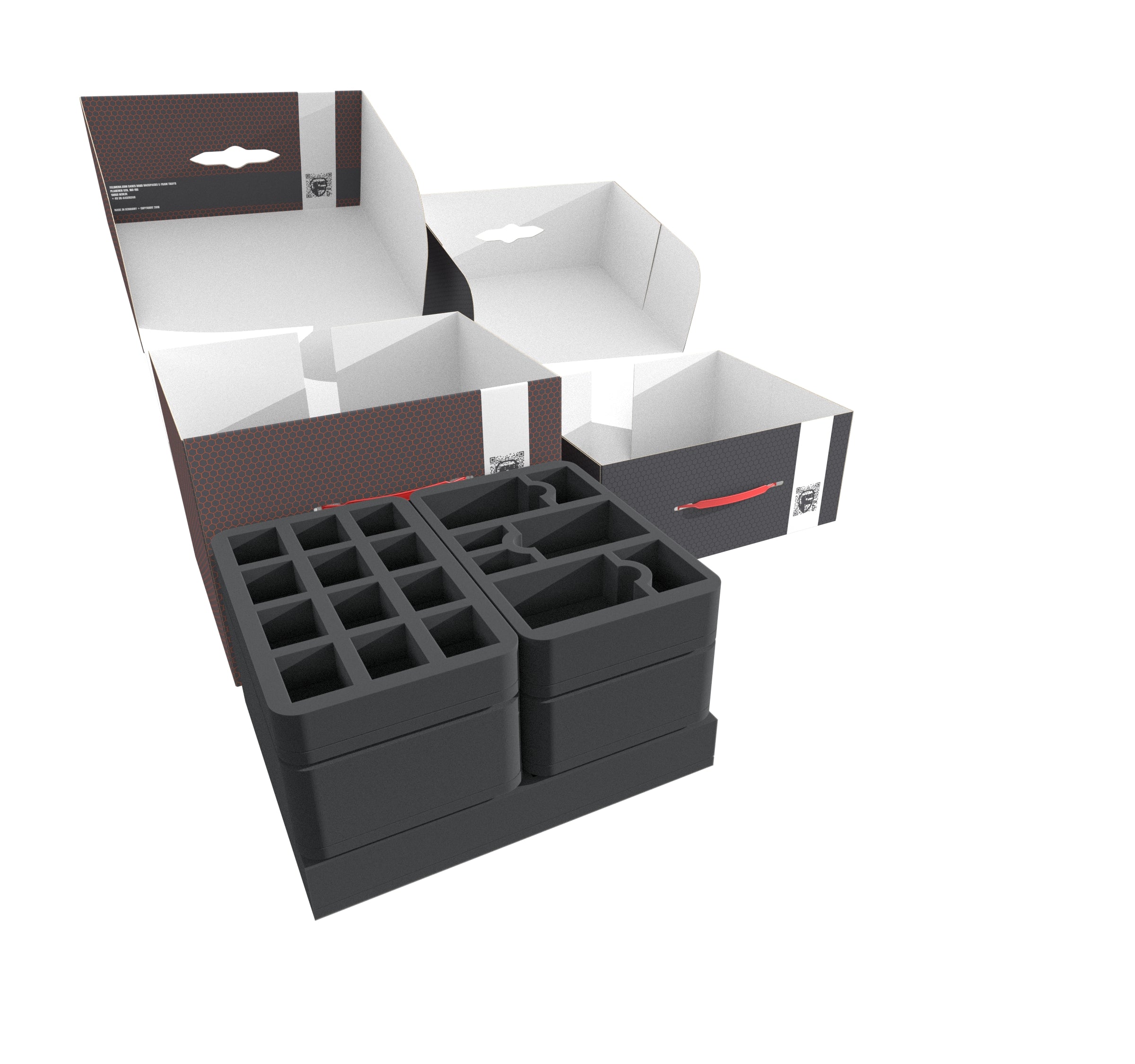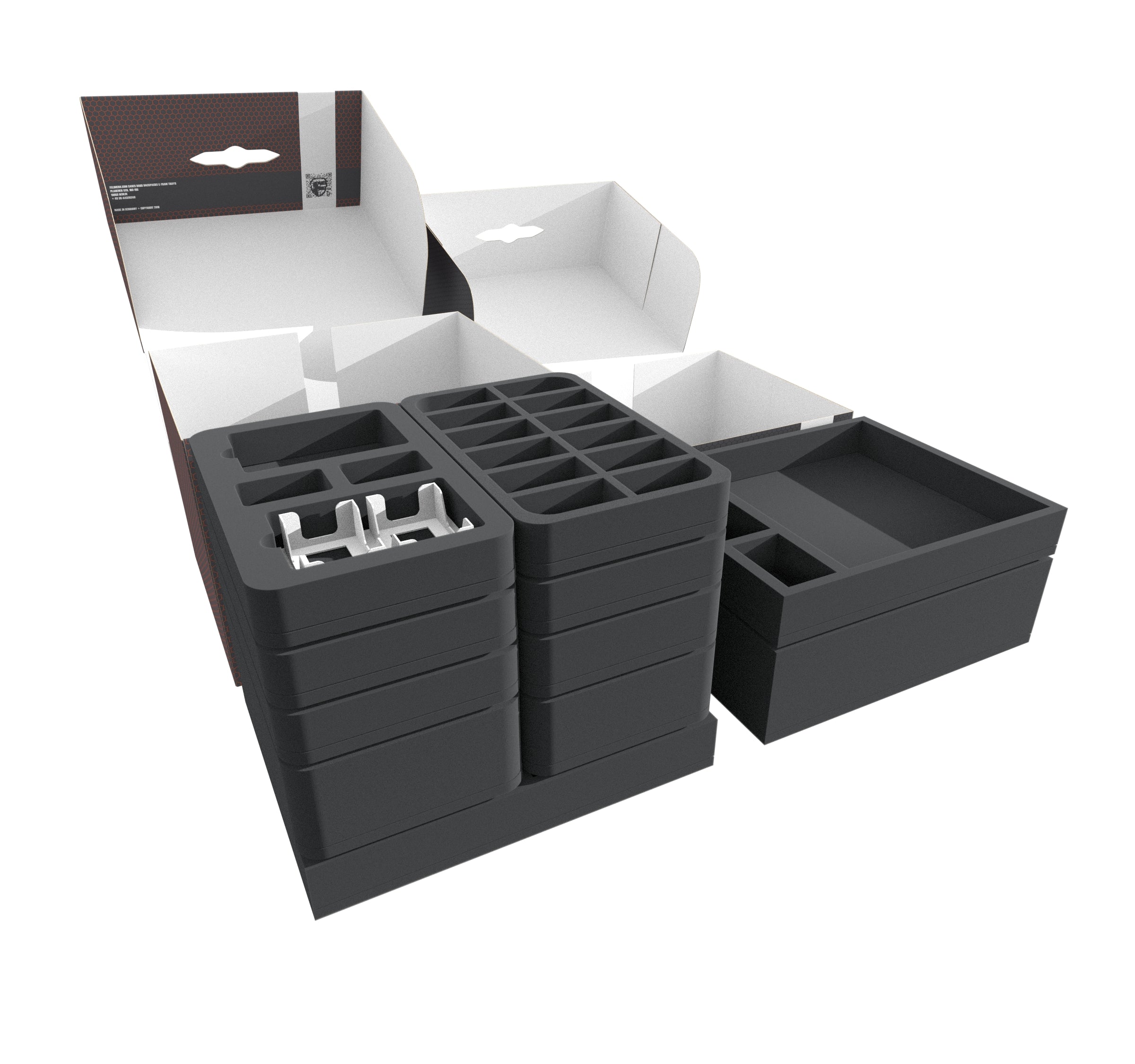 Dzięki specjalnie dopasowanemu krojowi, miniatury są ściśle dopasowane. Nawet jeśli podczas transportu potkniesz się w ciemnościach, figurki pozostaną na swoim miejscu. Miękka, drobno porowata pianka chroni delikatne detale przed odłamaniem, a kolory pomalowanych modeli przed zadrapaniami i ścieraniem farby.