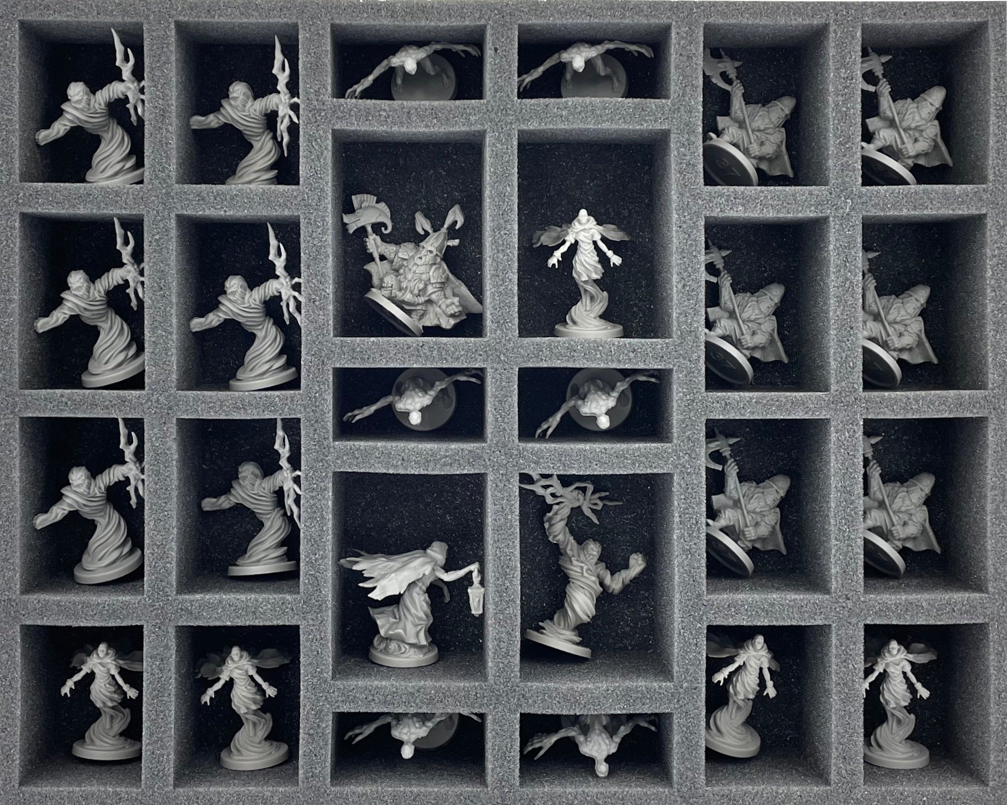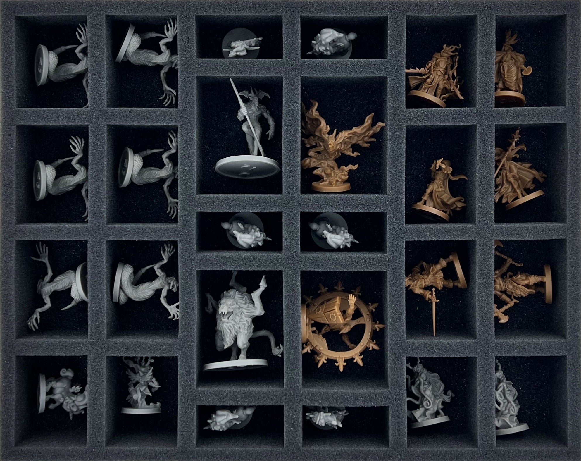 Dla każdego potwora, bohatera i szefa znajduje się specjalnie wycięty przedział. Dzięki niestandardowemu cięciu, figurki pozostają na swoim miejscu nawet podczas przenoszenia pudełek. Figurki nie ślizgają się, a otoczone miękką pianką są optymalnie chronione przed uszkodzeniem. Podczas malowania figurek możesz mieć pewność, że kolory są chronione przed brzydkimi zadrapaniami i odpryskami farby.
