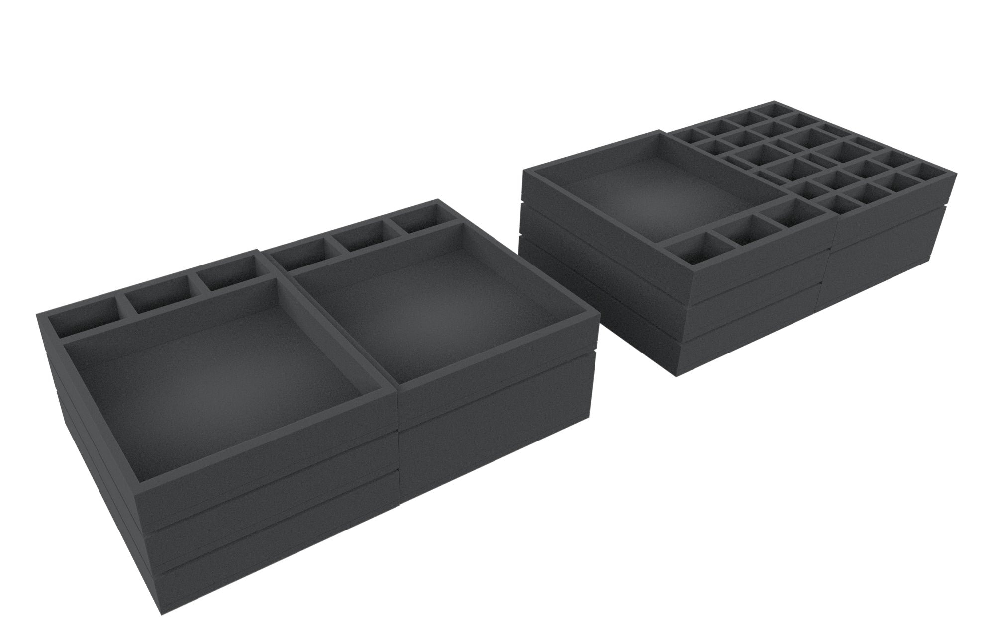 - 2 tace piankowe Half-Size z trzema przegrodami każda na duże i normalne miniatury oraz małe materiały do gier (2 x HSMEVT100BO)