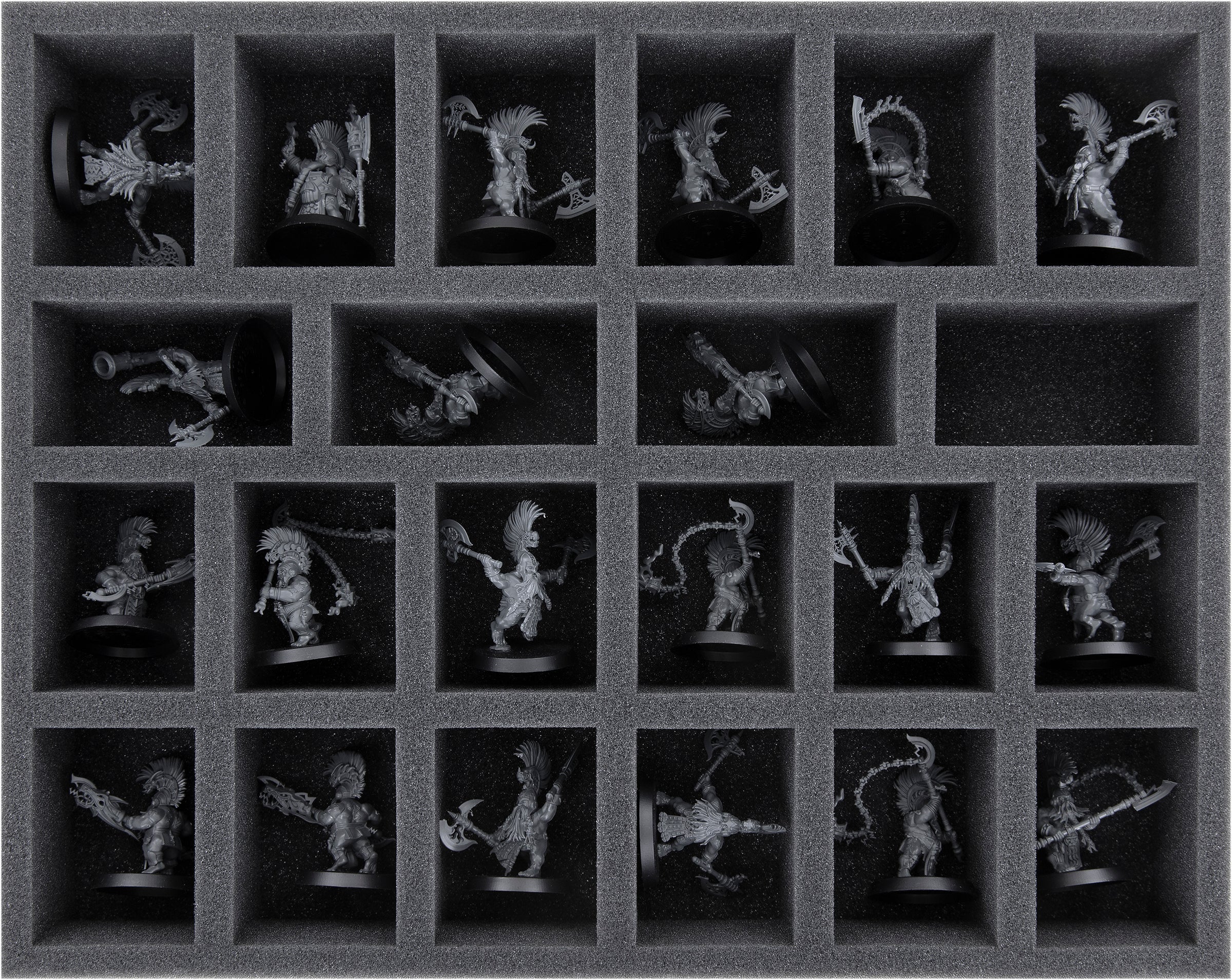 - 1 podstawkę z pianki Full-Size z 22 przegródkami na 10 Hearthguard Berzerkers/Auric Hearthguard, 1 Auric Flamekeeper, 10 Vulkite Berzerkers (FSMEZZ050BO)
