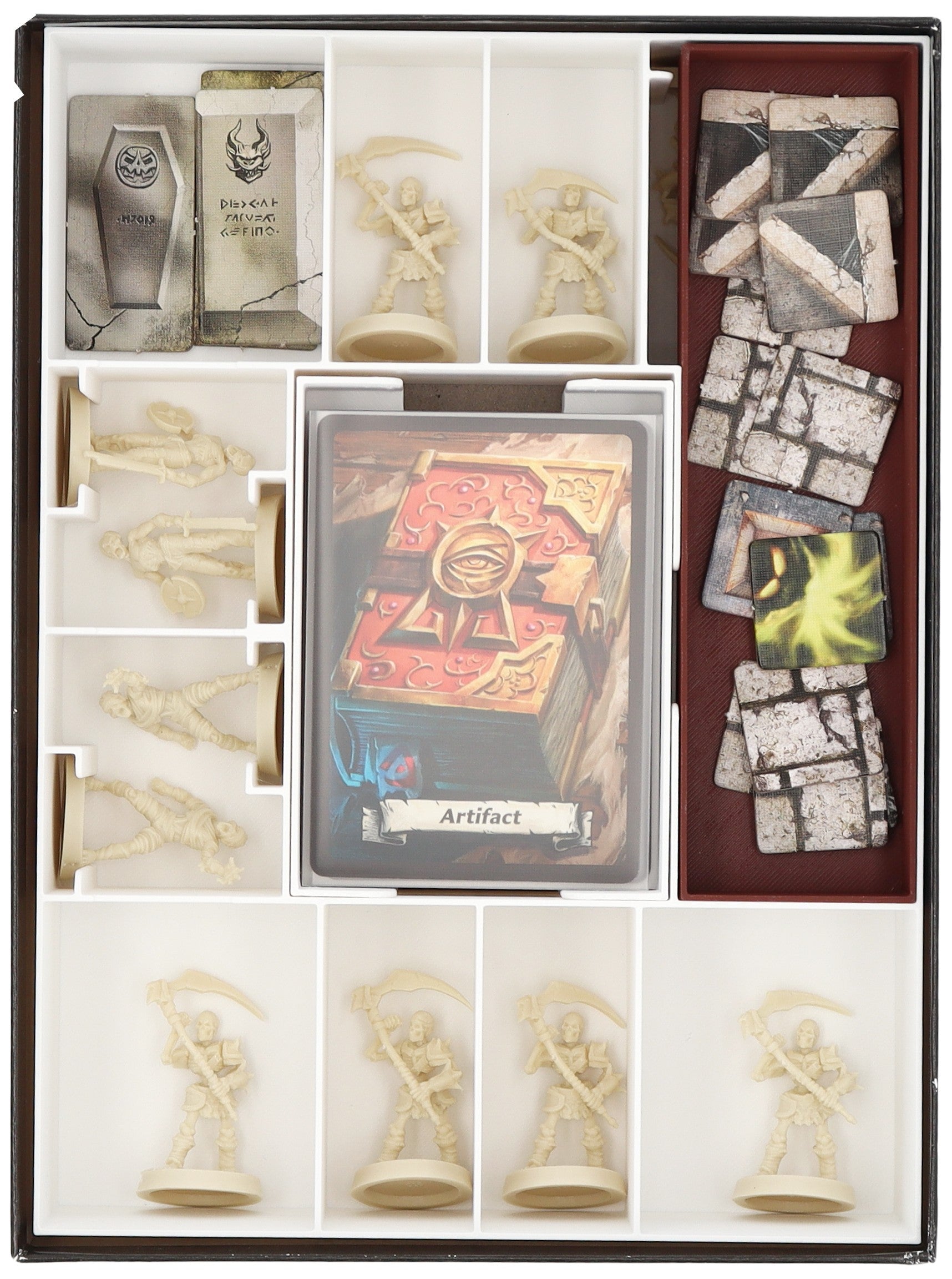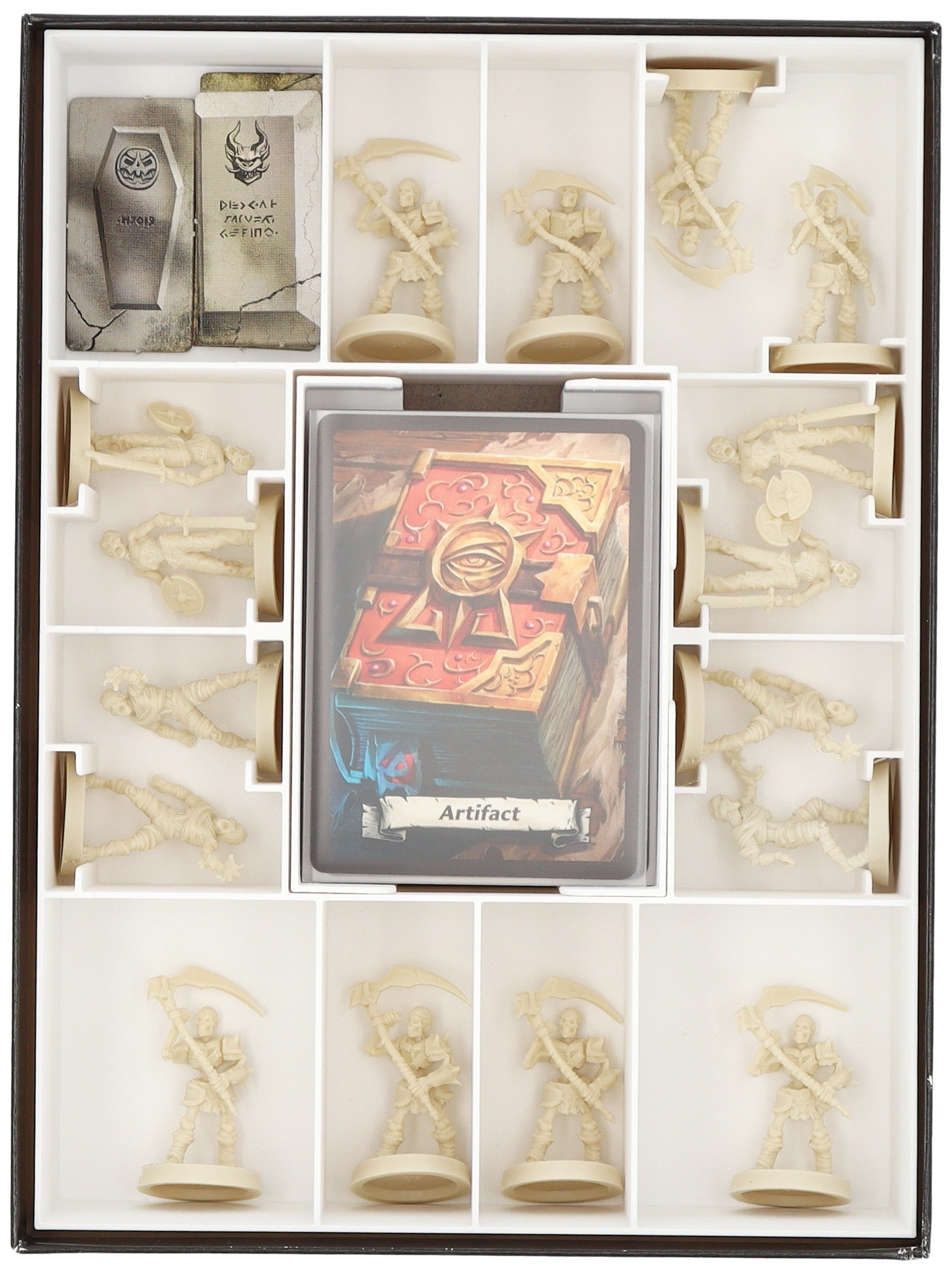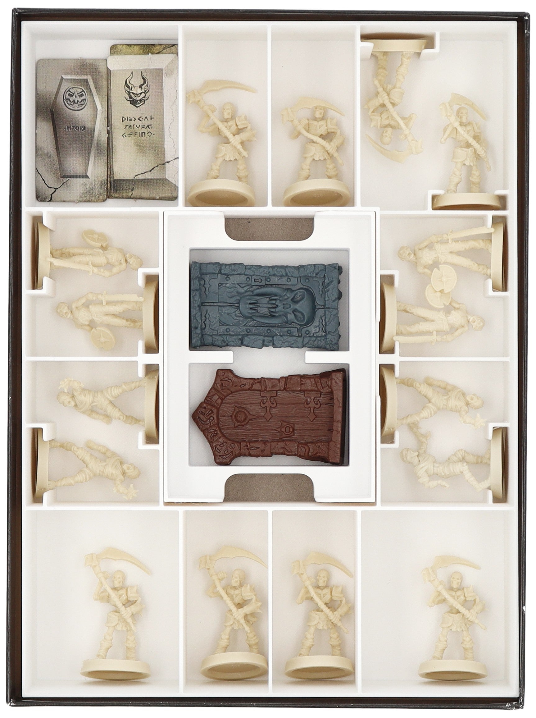 - Miniatury należy sortować indywidualnie w odpowiednich przegródkach. Żetony i karty znajdują się na osobnej tacy.