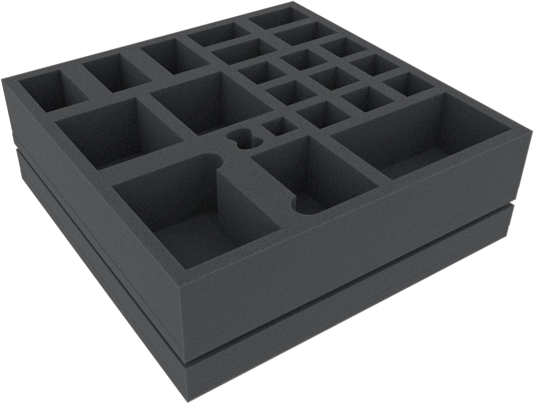 To rozszerzenie dla Descent ponownie przychodzi z bogactwem bohaterów, potworów i klas. Aby nie dopuścić do pogrążenia się w chaosie, w Feldherr znaleźliśmy rozwiązanie. Wiesz, co to jest? zestaw półek z pianki do oryginalnego Descent: Podróże w ciemnej drugiej edycji - Shadow of Nerekhall - pudełko z grami planszowymidzieli się na dwie nakładające się na siebie tace piankowe (wymiary: 285 mm x 285 mm x 285 mm x 60 mm wysokości i 285 mm x 285 mm x 30 mm wysokości). W skład zestawu wchodzi również pasująca nakładka wykonana z tego samego materiału. Stosujemy wyłącznie wysokojakościową, wolną od chloru i kwasów pianę.