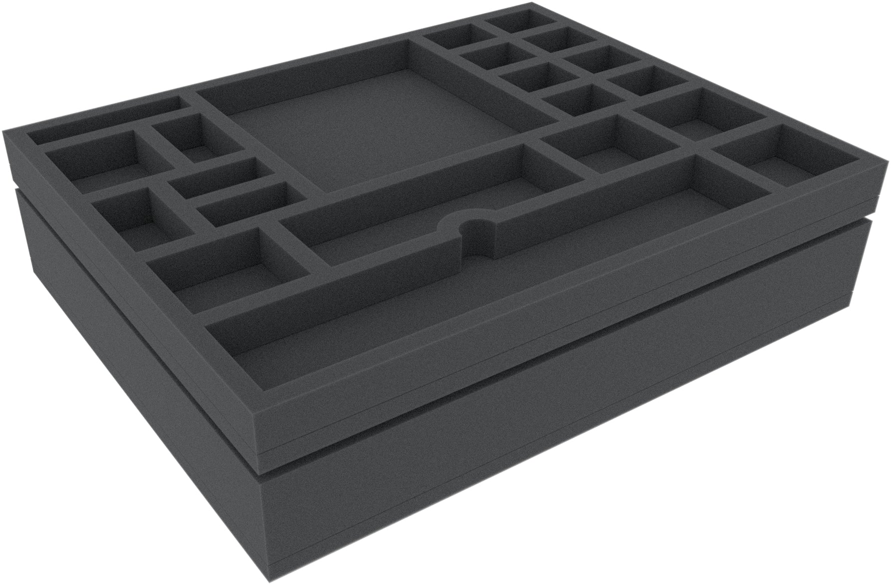 - 1 półka z pianką z 55 przegródkami na plastikowe miniatury, karty i żetony (CYMEMT055BO)