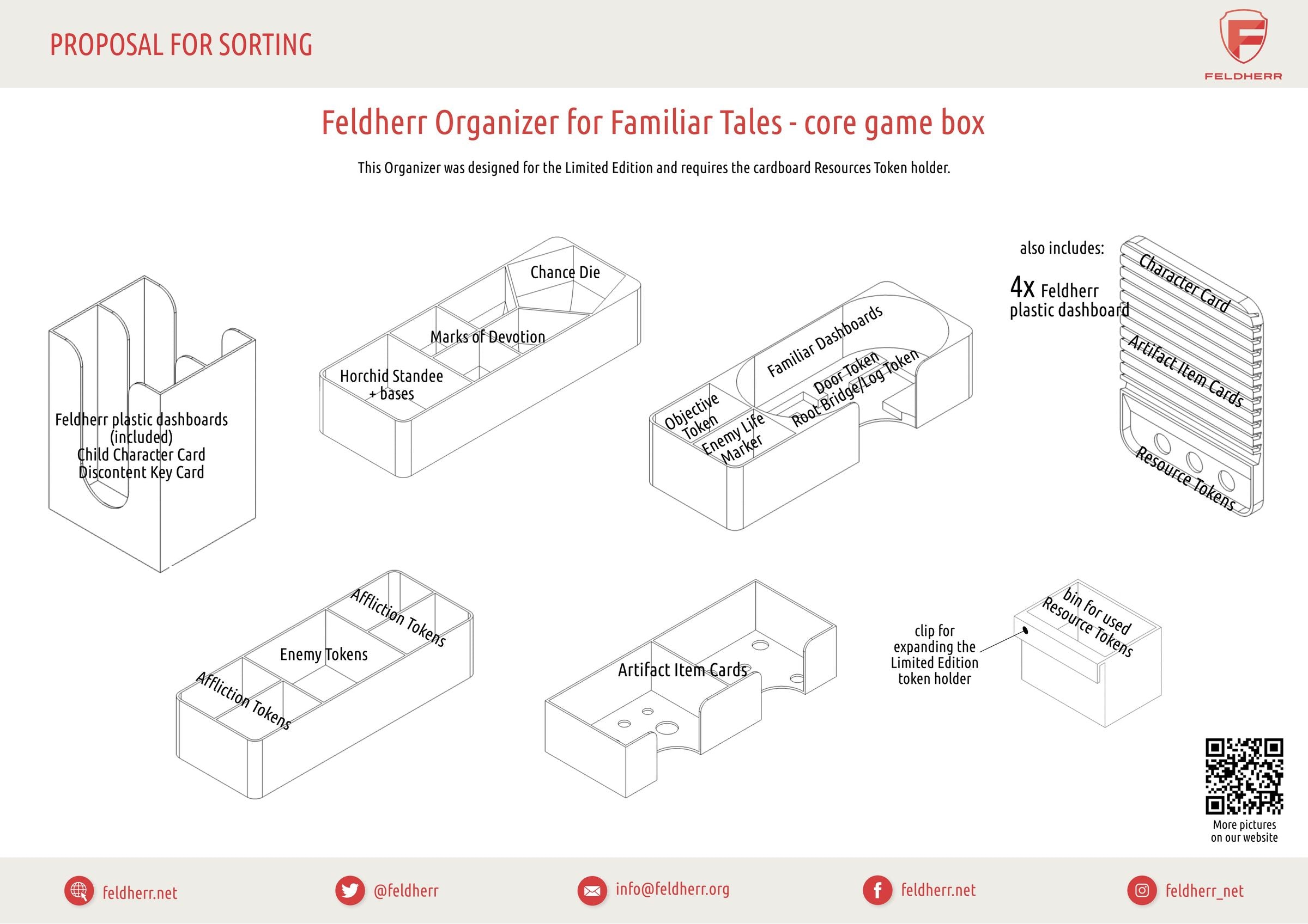 - Zestaw został zaprojektowany do edycji limitowanej i wymaga kartonowego uchwytu na żetony zasobów. Dołączone Deck Boxy służą do sortowania kart oraz do gry.