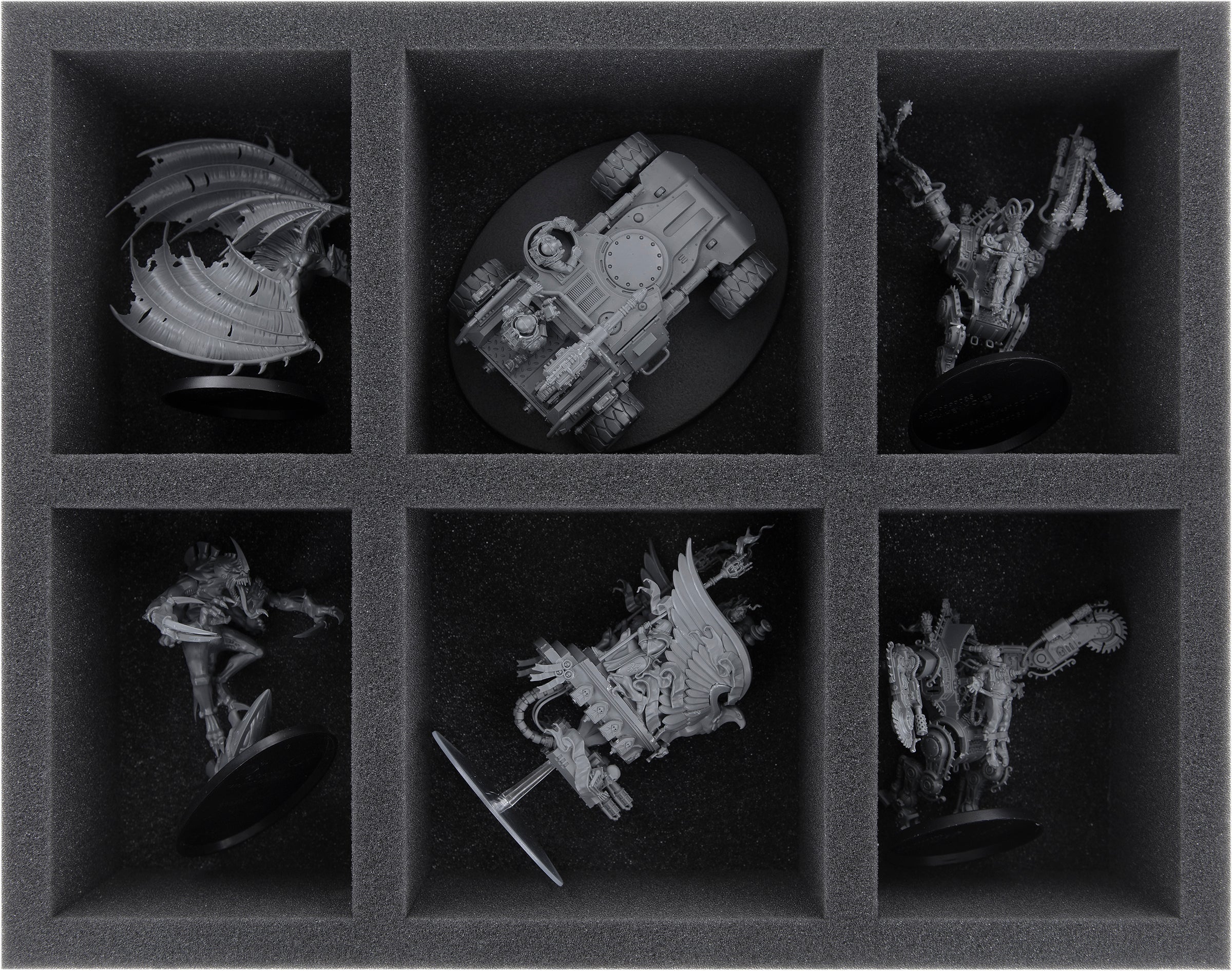 - 1 taca piankowa Full-Size z 6 przegrodami na większe miniatury, takie jak Celestine, Living Saint, Zephyrim Squad i modele o podobnych wymiarach (FS060A010).