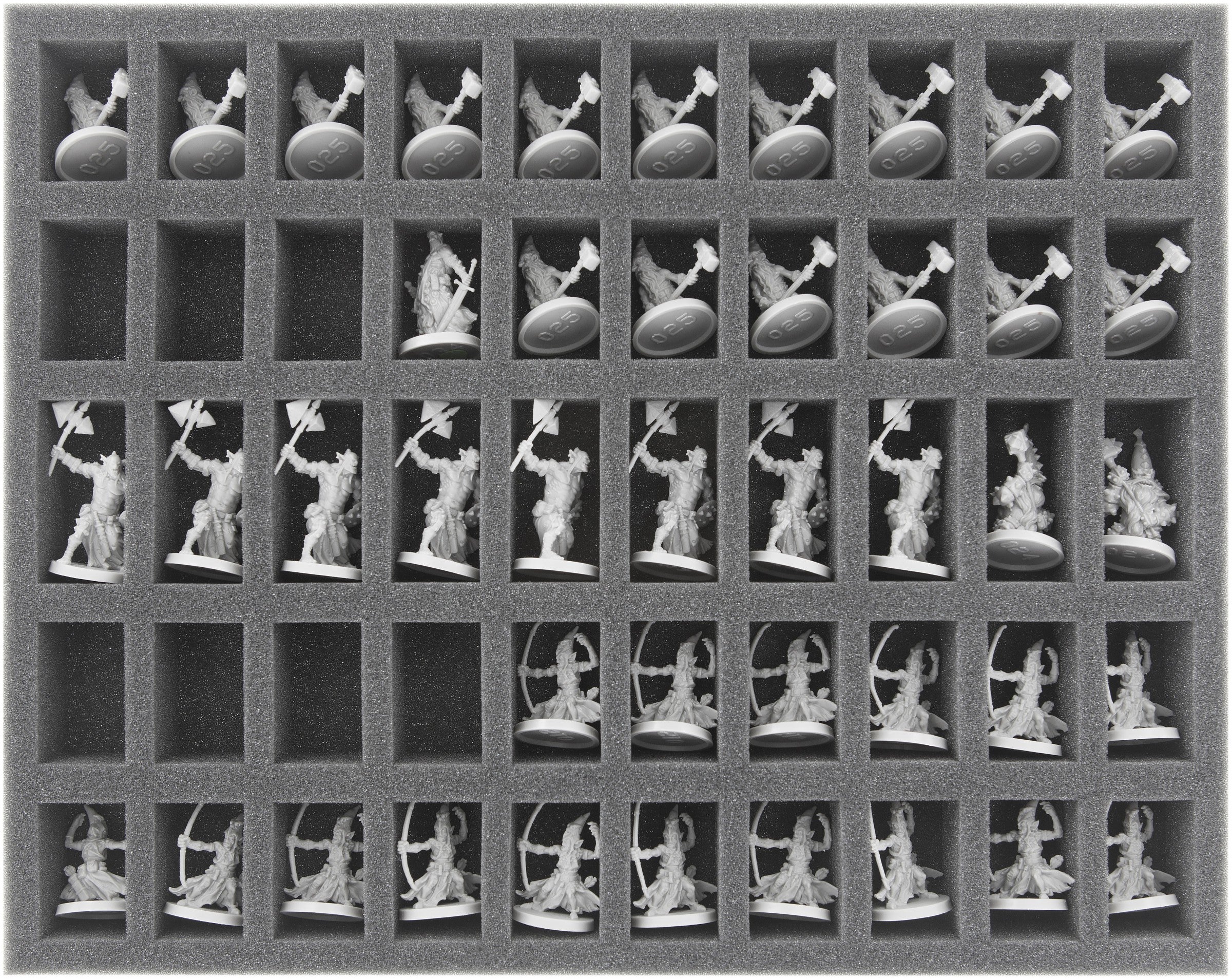 Taca z pianki jest idealna do masywnych, ciemnych miniatur w skali 28 mm. Pełnowymiarowa wkładka jest kompatybilna z torbami i walizkami Feldherr: MEDIUM, MAXI, MESSENGER, CASE i STORAGE BOXES. Więc można je trzymać w studni, markerach i kostkach do gry.