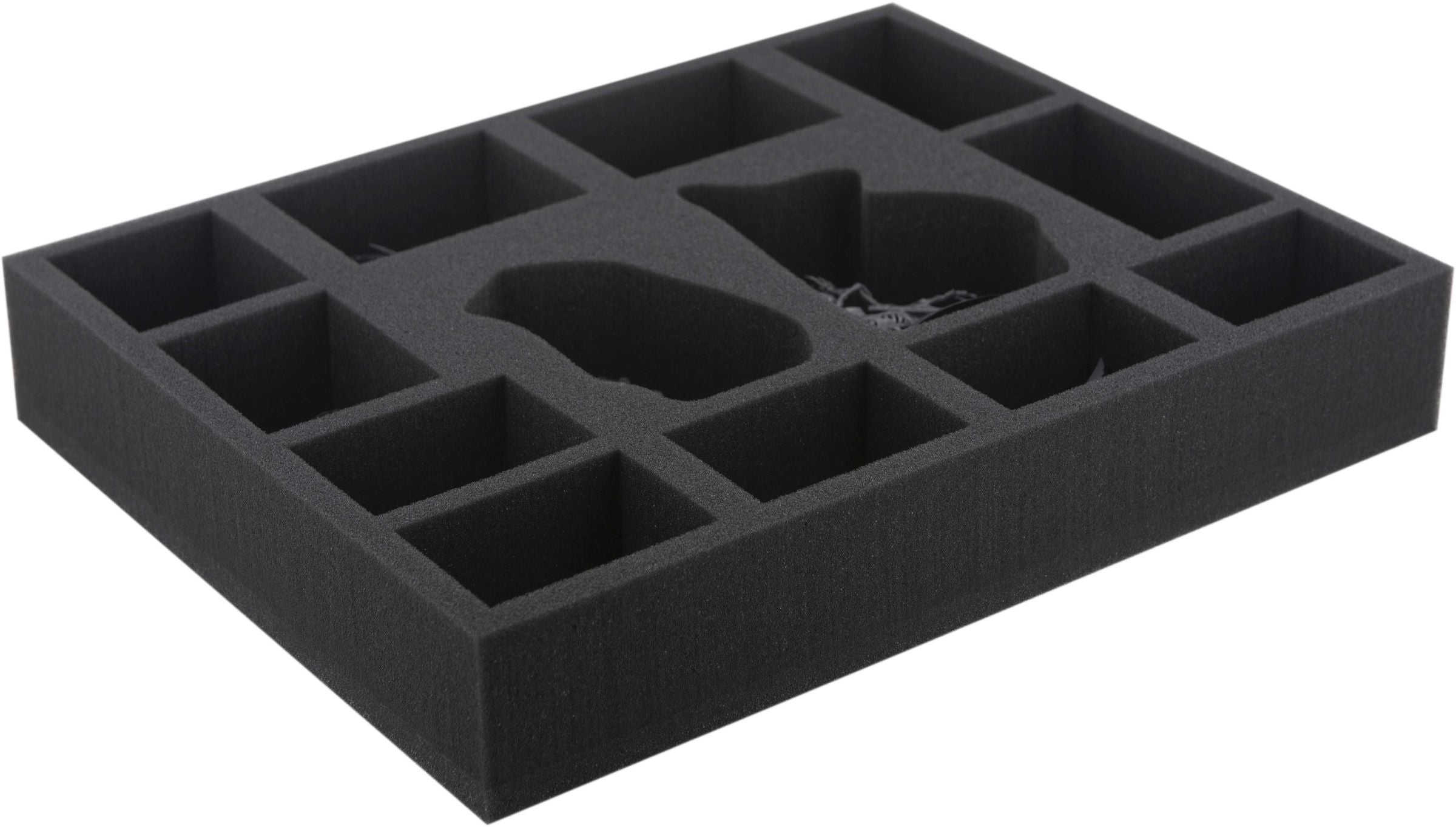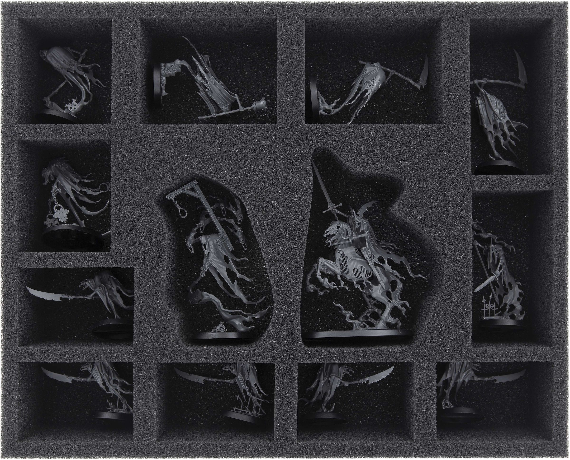 Z 16 przegródkami dostosowanymi dokładnie do figury, ta piankowa taca ochroni Twoje miniatury Nighthaunt z Age of Sigmar: Soul Wars. Oprócz dużej, specjalnie ukształtowanej komory dla Rycerza Całunów na jego szkieletowym wierzchowcu i jednej dla Lorda Kata, 11 innych duchów znajduje tu bezpieczne miejsce.