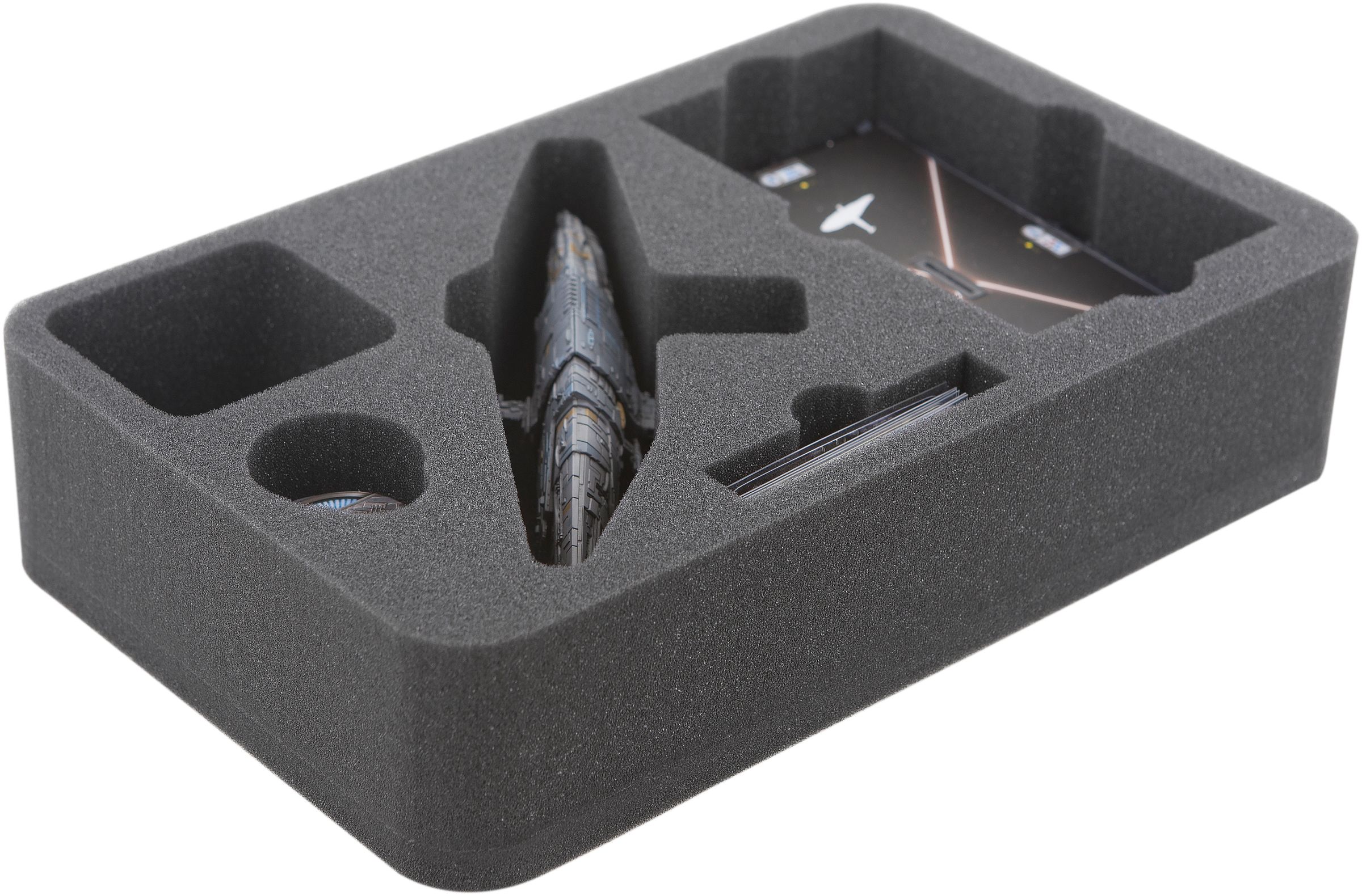 Chrońmy wasze Gwiezdne Wojny: Gwiezdne Wojny: Gwiezdna Armada. W tej inkrustacji Half-Size Profundity MC75 jest doskonale chroniona. W czterech przedziałach na furtki masz miejsce na bazę, tokeny, karty, pokrętła sterujące i pokrętła szybkiego wybierania. Taca piankowa została opracowana specjalnie dla MC75 Profundity. Cały materiał do gry i krążownik są doskonale chronione przez indywidualnie zaprojektowane przegrody.