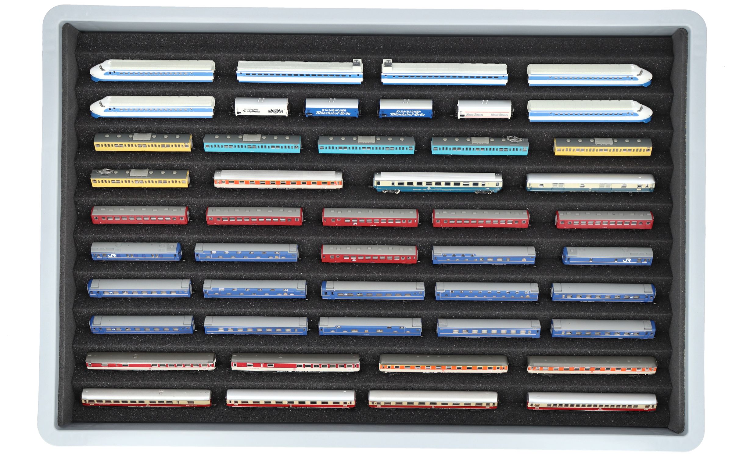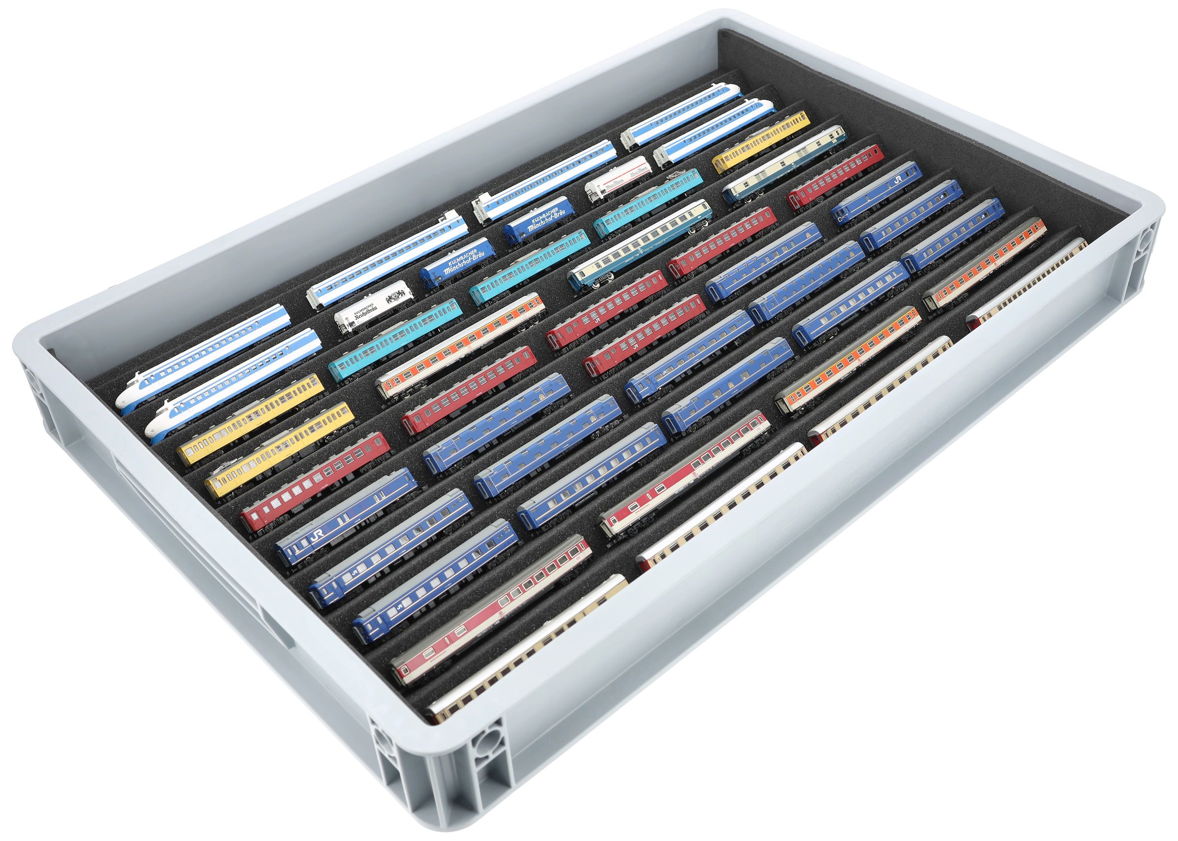 Dix compartiments, spécialement conçus pour les trains miniatures de l'écartement Z, offrent à vos locomotives et wagons une protection fiable pour le stockage et le transport.