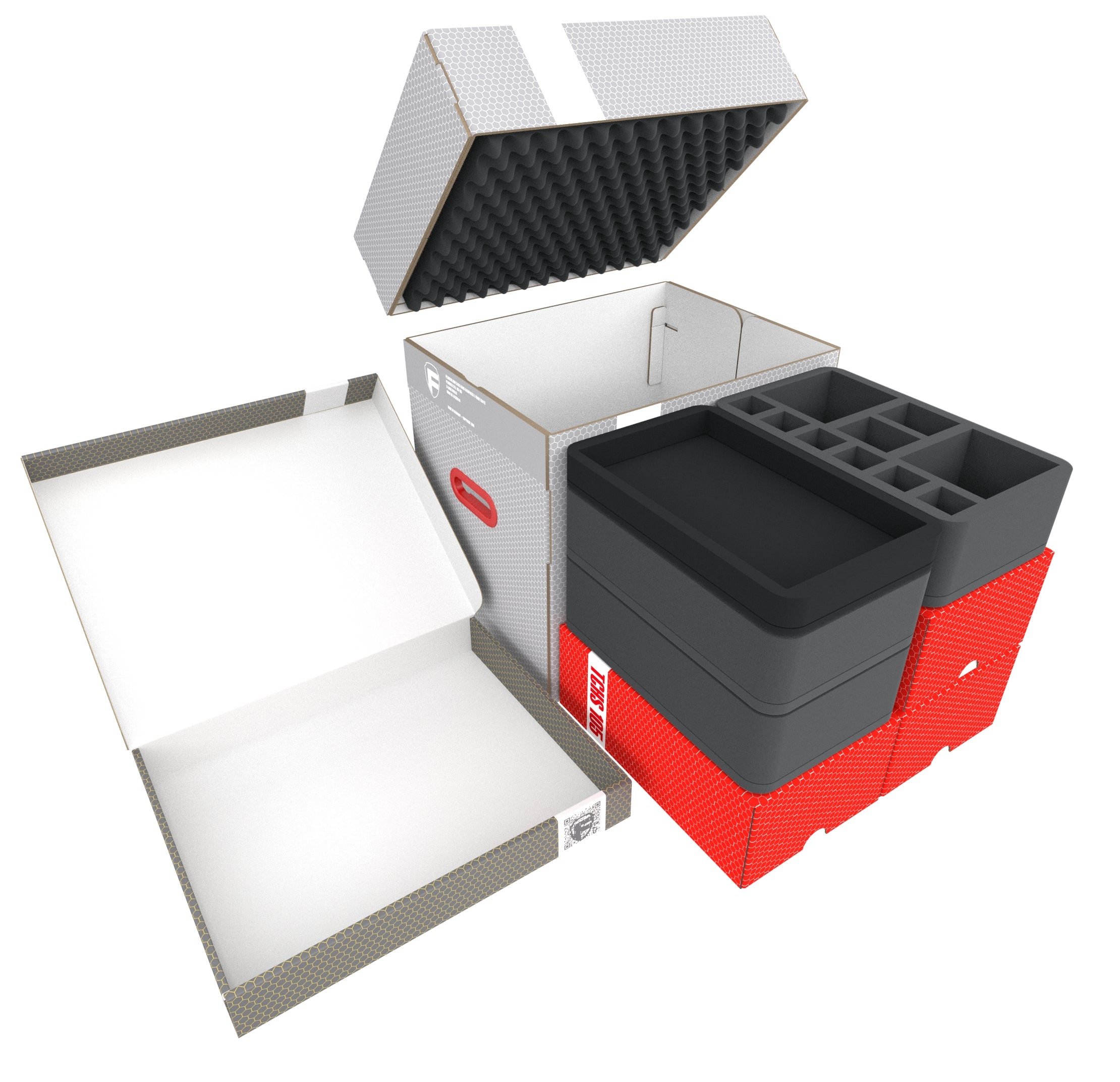 - Pour le tri des cartes et du matériel de jeu, le set comprend trois TCHS105 Storage Box, un robuste FSLB040 Storage Box, un insert en mousse dure et divers inserts Organizer.