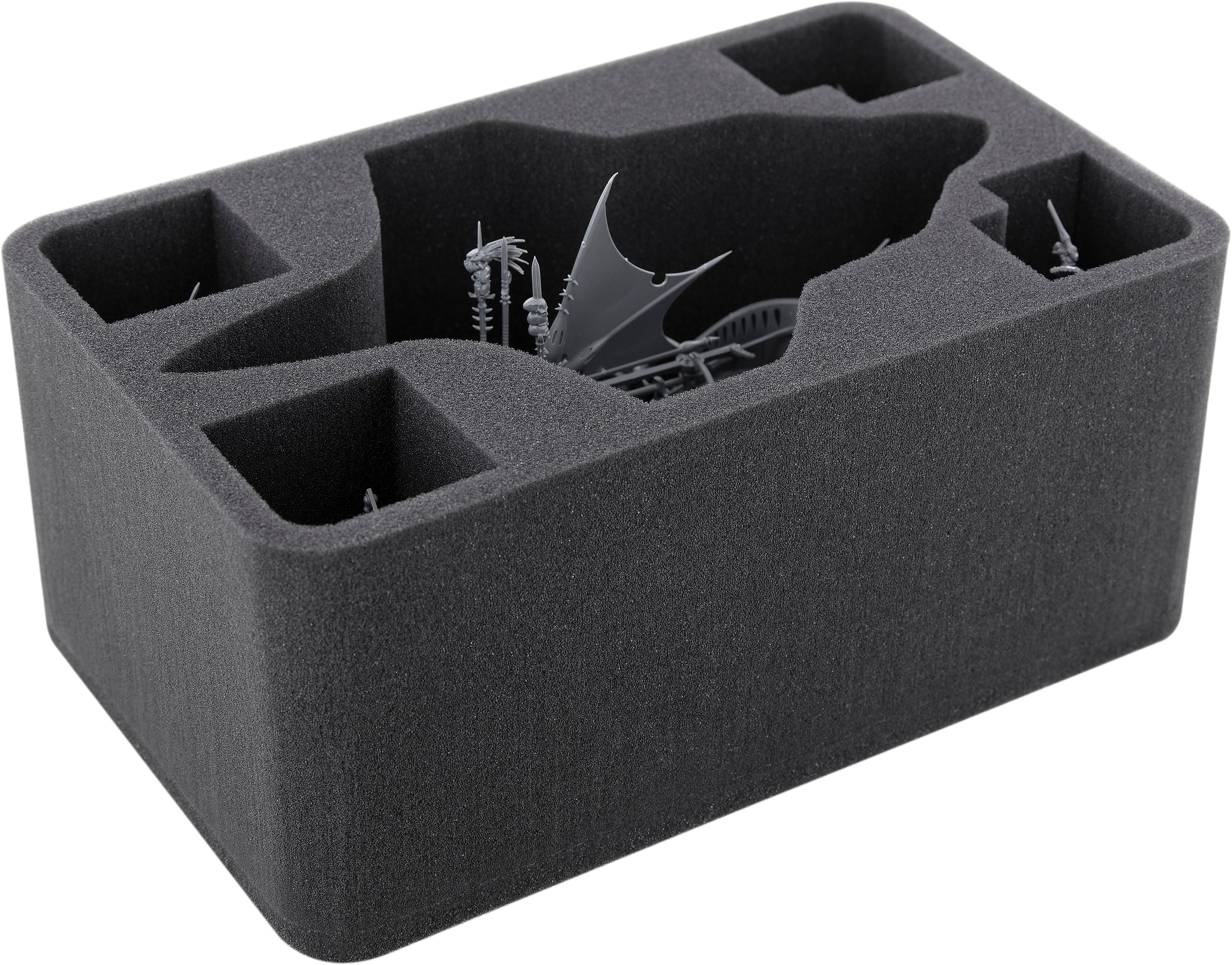 Mais le Ravager ne présente pas seulement des défis particuliers aux ennemis du Dark Eldar. Une figurine aussi fine et détaillée a ses propres exigences. C'est pourquoi nous avons trouvé la bonne solution pour que votre modèle filigrane arrive sur la table bien protégé avec ce set de mousse Feldherr fait sur mesure.