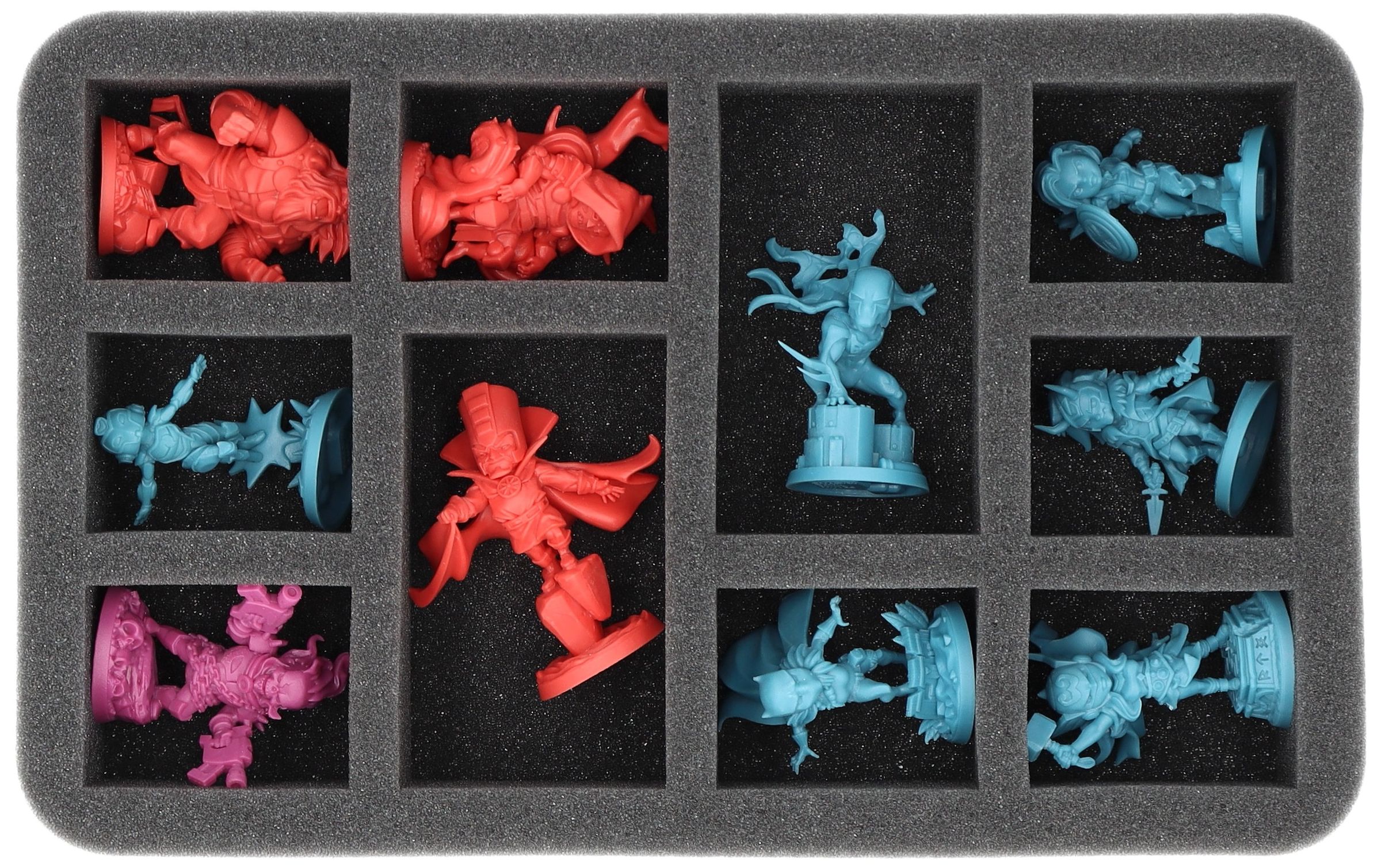 - Un insert en mousse de taille moyenne offre une protection fiable à toutes les figurines : des compartiments parfaitement adaptés protègent les détails délicats et les figurines peintes des rayures et de l'abrasion.