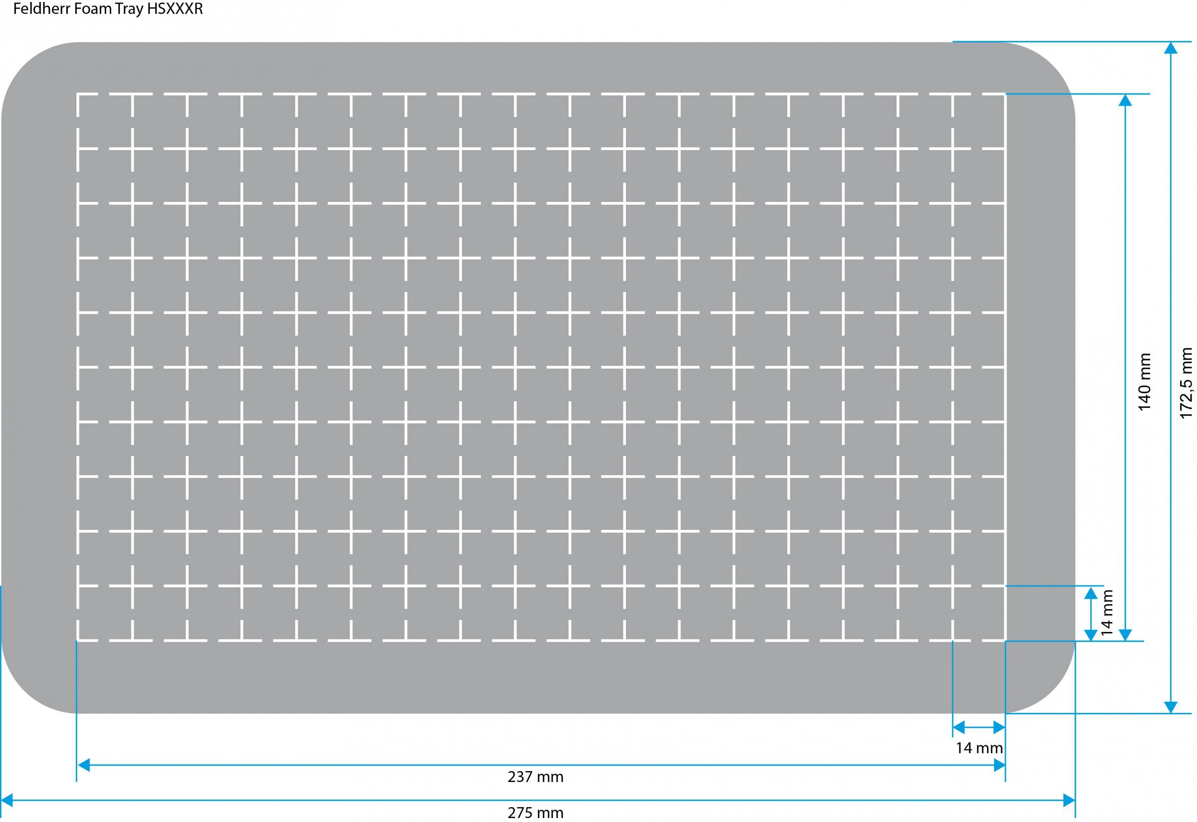 • Dimension of the Feldherr half-size (HS) foam tray: 275 mm x 172 mm x 60 mm height