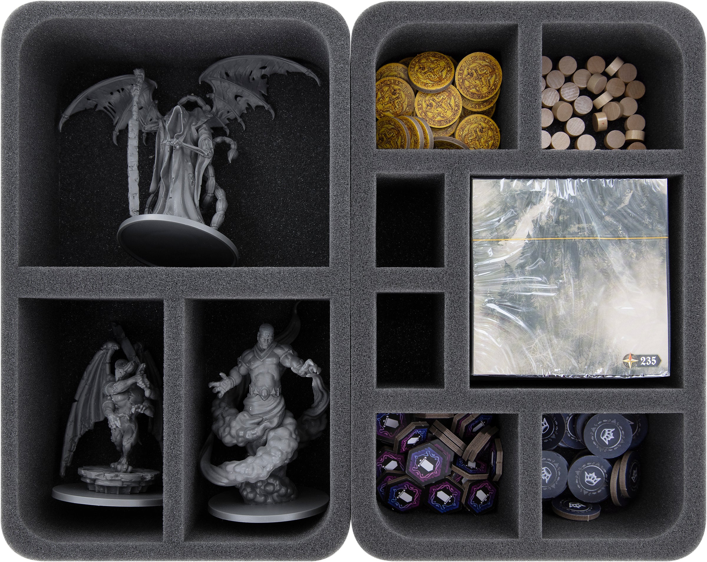 Enfin, les couvertures en mousse garantissent que vos figurines et vos cartes sont bien emballées et qu'elles survivront au transport chez vos amis sans être endommagées.