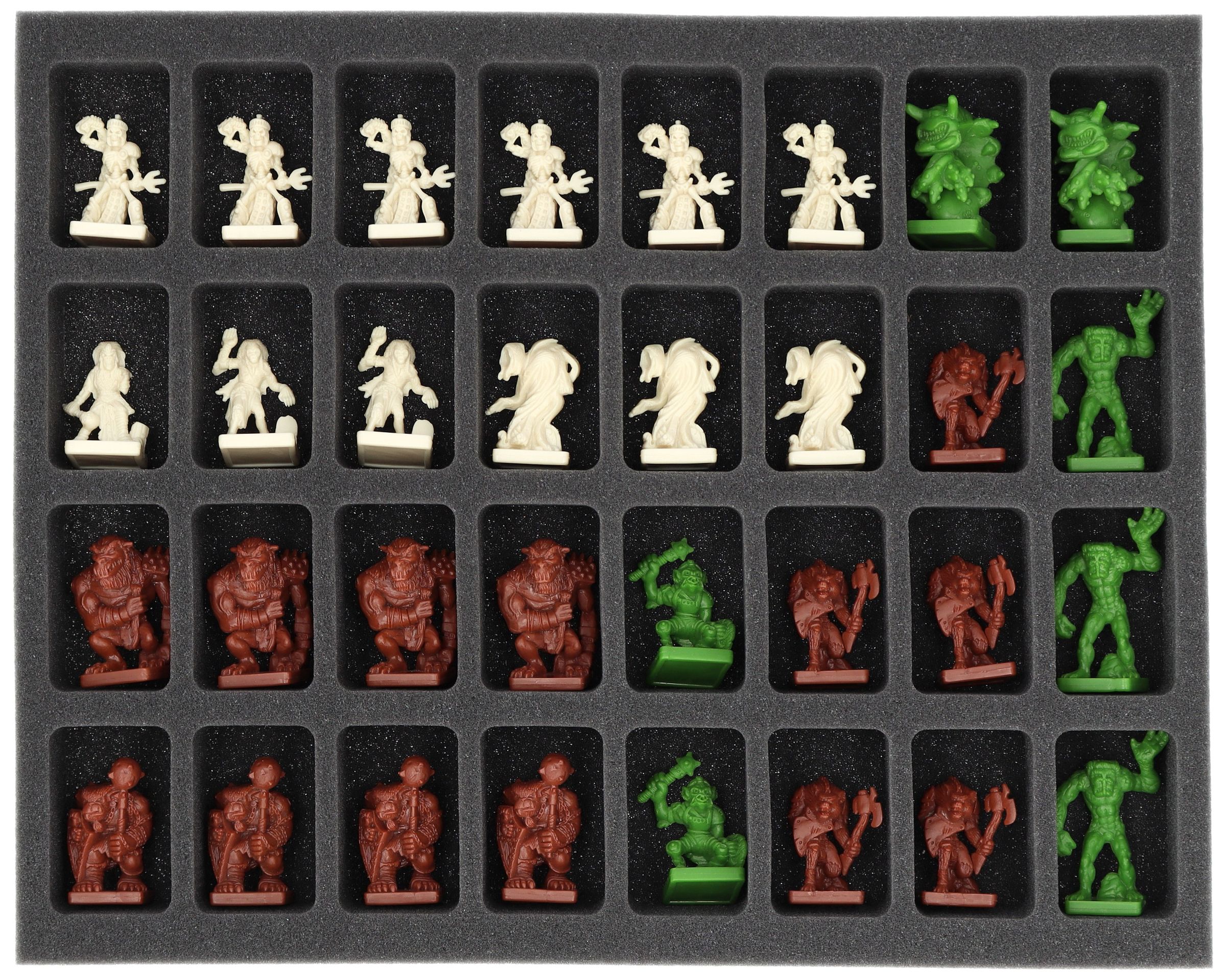 - 1 plateau en mousse de taille normale avec 32 compartiments pour les figurines telles que les monstres, les héros et les figurines de dimensions similaires (FSMEDS040BO)
