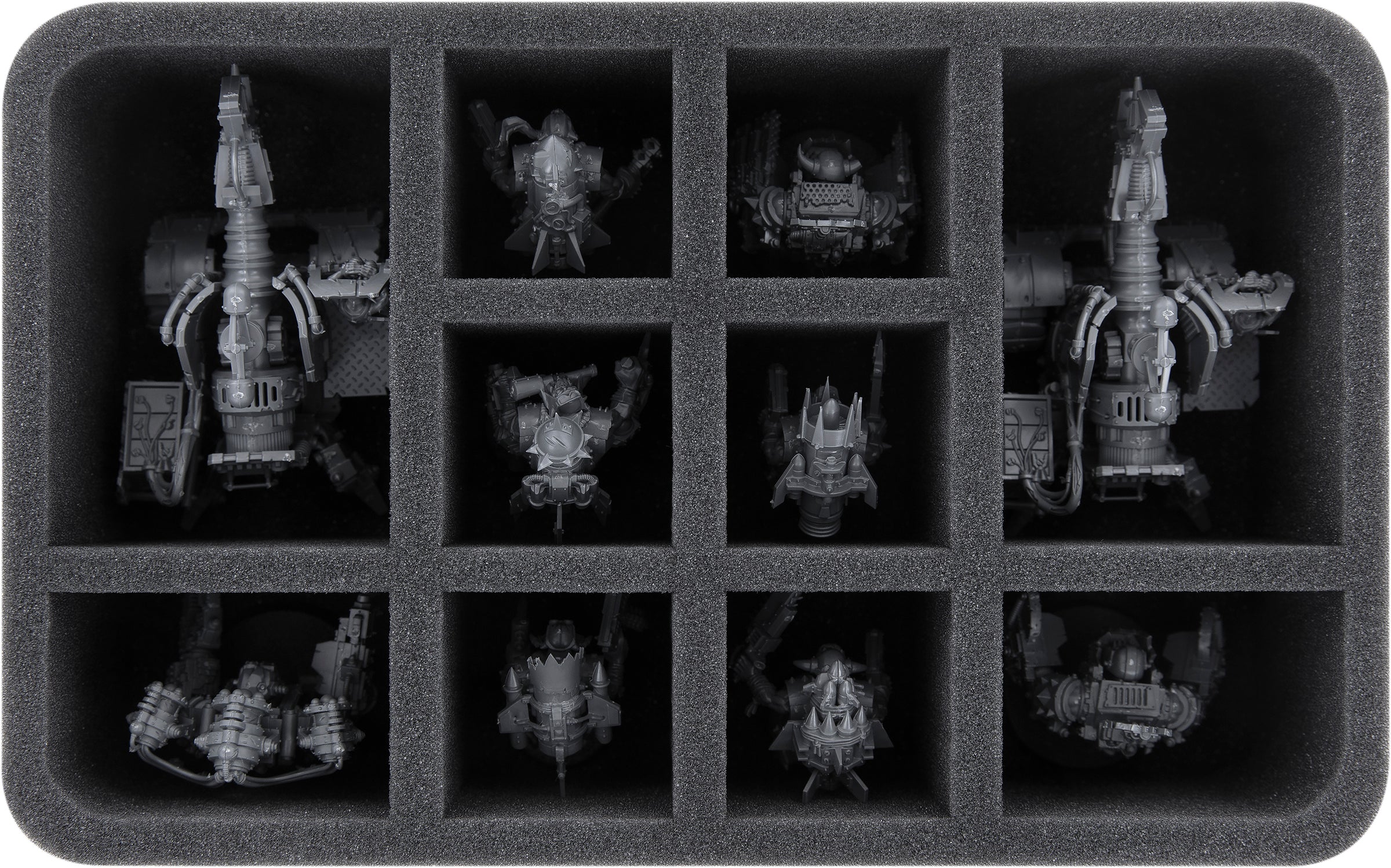 - 2 plateaux en mousse Full-Size avec chacun 10 compartiments pour, par exemple, 2 Squighog Boyz, 8 Beast Snagga Boyz (HSMFAH070BO)