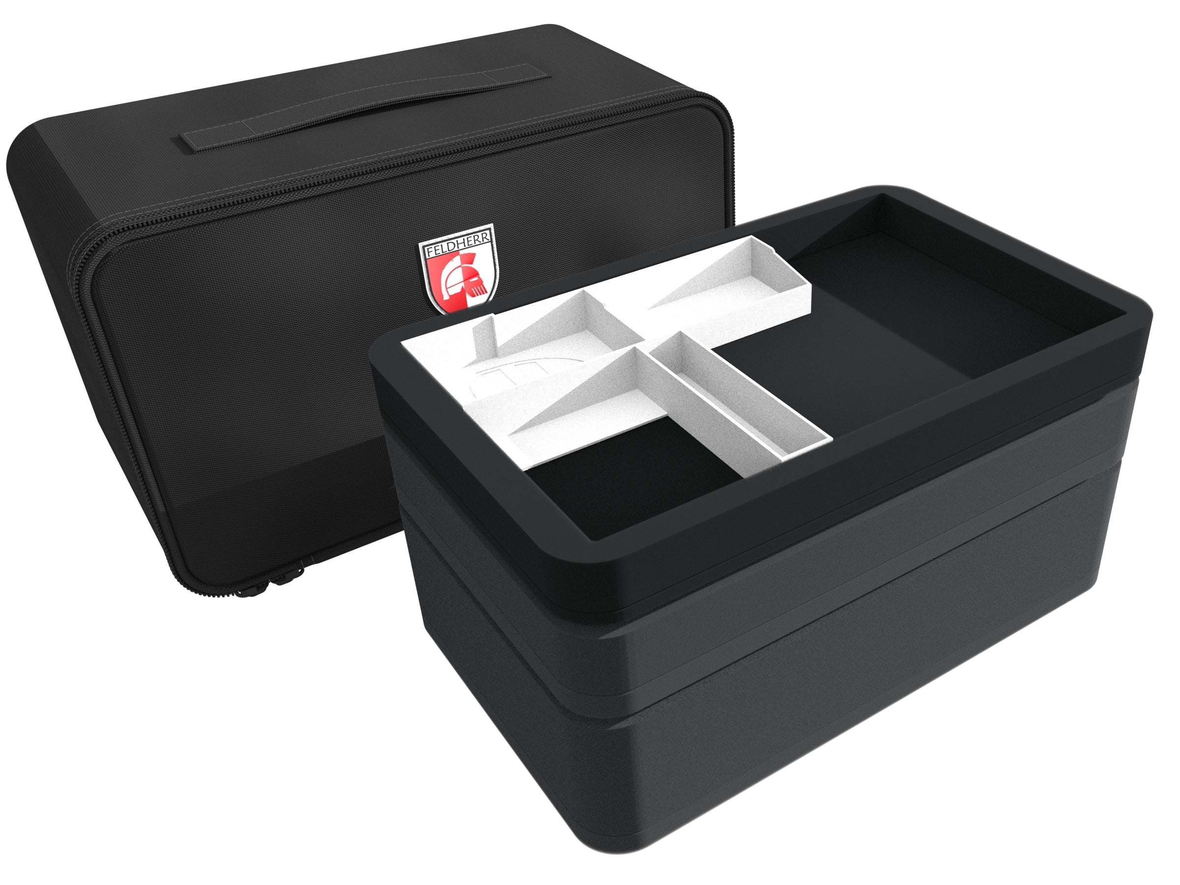 En plus de la glace et de la neige, de nouveaux personnages et du matériel de jeu vous attendent dans "L'horreur gelée". Bien sûr, ils veulent être emballés proprement et en toute sécurité. Avec ce sac MINI PLUS et les Feldherr mousses de rangement correspondants, vous pouvez le faire sans problème. Grâce à la mousse personnalisée et à l'insert en plastique, vous pouvez vous assurer que toutes les figurines, les pièces de terrain et le matériel de jeu sont bien organisés et protégés.