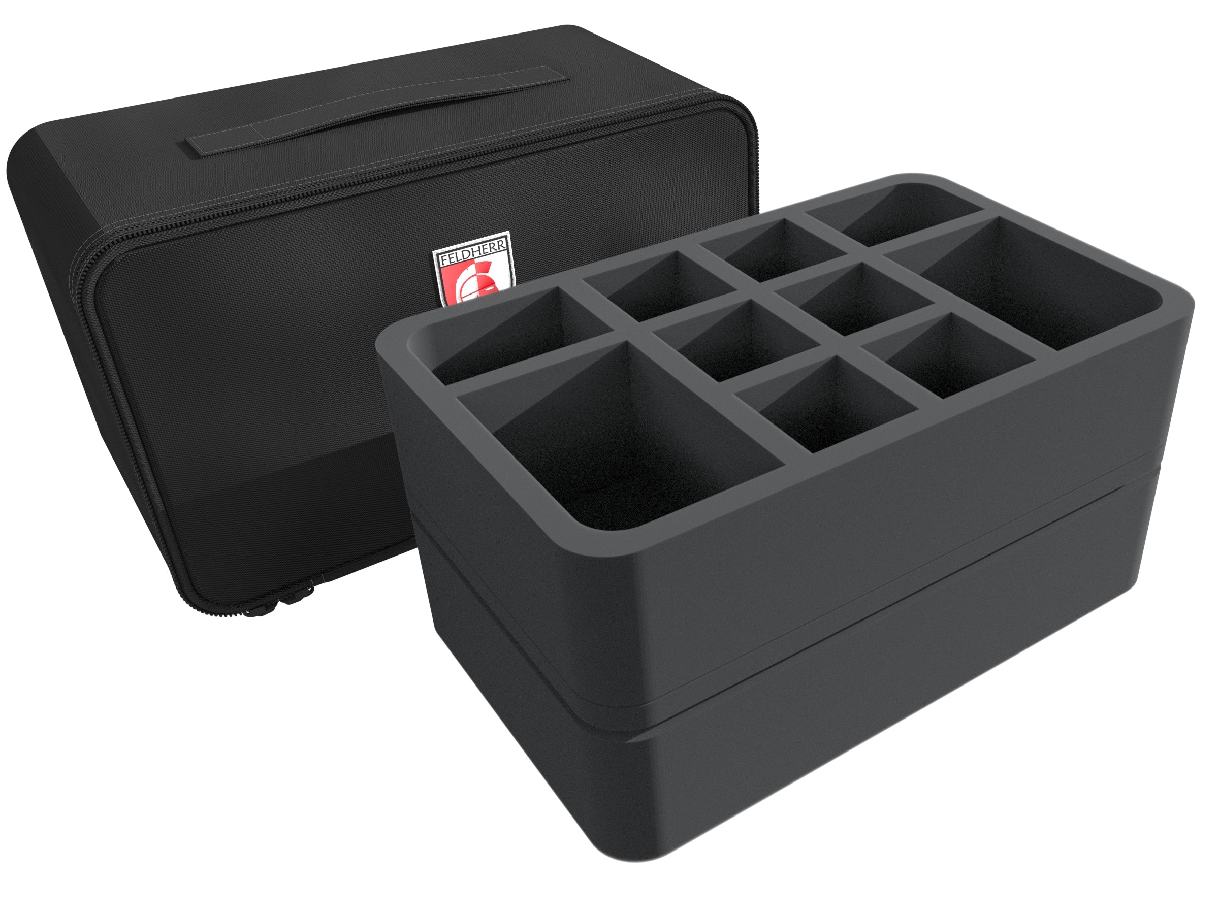 Pour protéger vos figurines, nous avons inclus 2 plateaux en mousse Half-Size dans le sac. Qu'il s'agisse de Warjacks ou de Squad, chaque figurine a son propre compartiment.