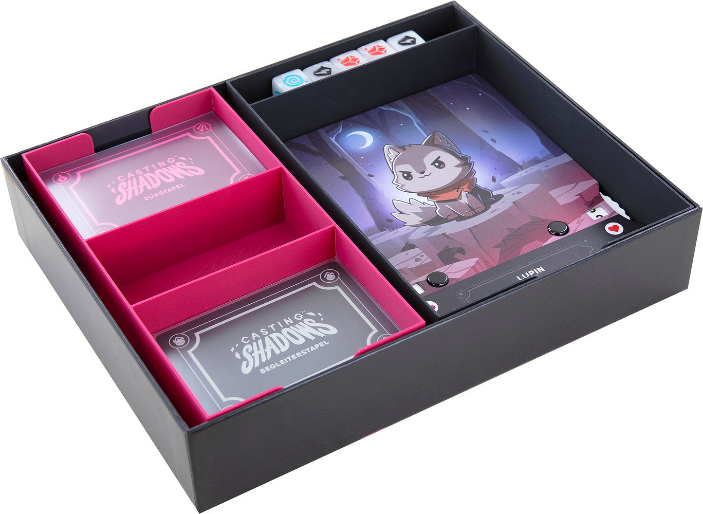 Nous vous accompagnons sur votre chemin avec ce Feldherr Organizer pratique pour votre boîte de jeu de base "Casting Shadows". Ainsi, vous n'avez pas à vous soucier des obstacles insurmontables ou du matériel de jeu non trié.