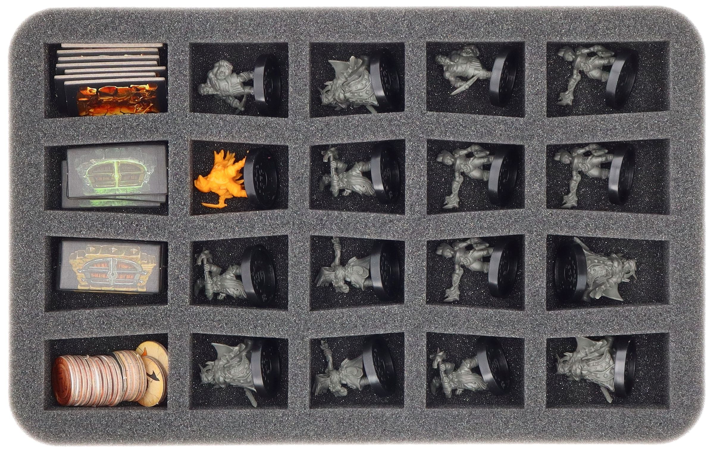 - 2 Half-Size mousses de rangement, chacun avec 20 compartiments pour les petits figurines + jetons (HS035C5BO)