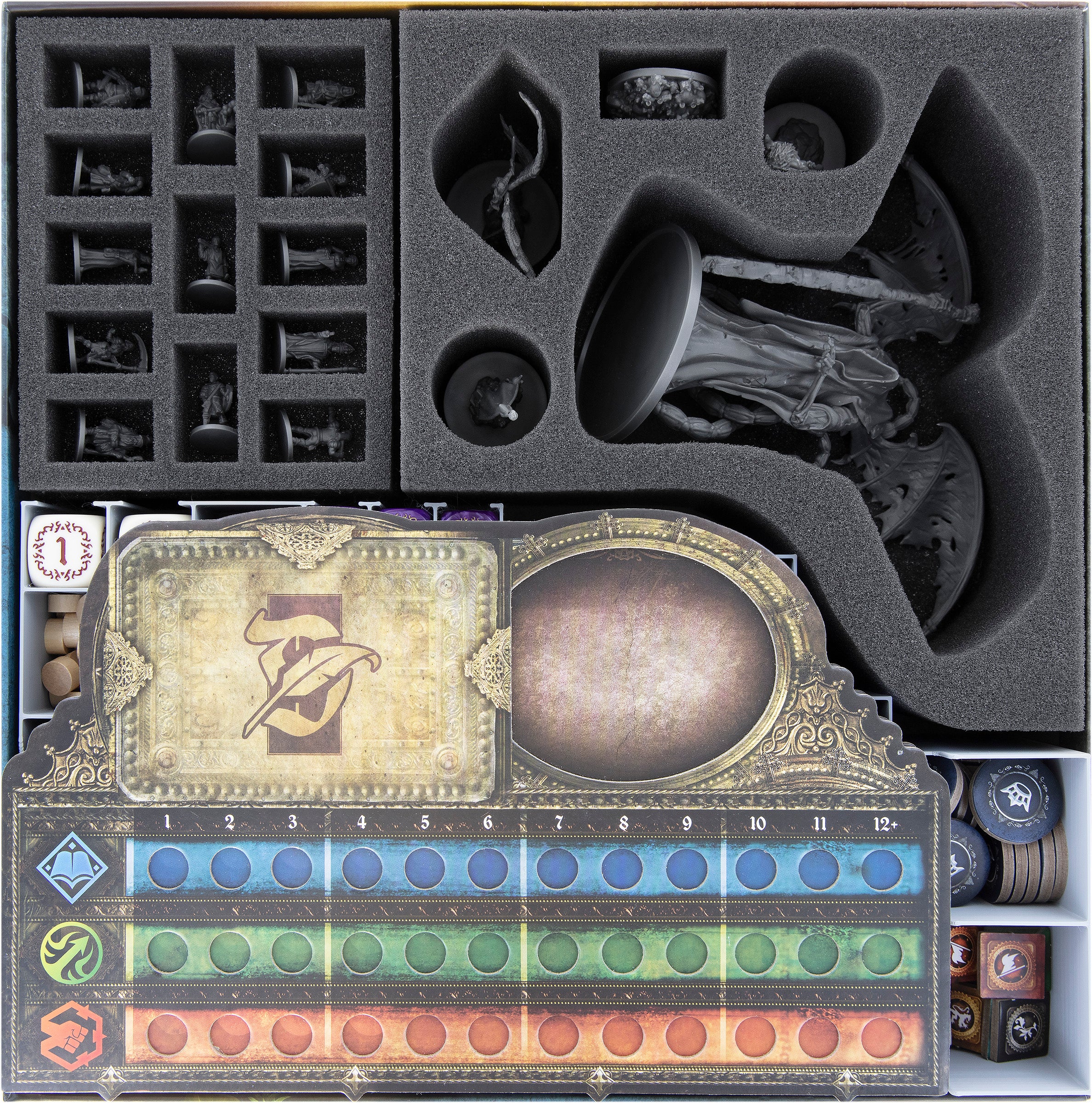 Dans "Le temps des légendes : Destinies", tout cela devient une cruelle réalité. Au 15ème siècle, vous vous battez contre de terribles monstres. La boîte du jeu de base est livrée avec du matériel de jeu magnifiquement conçu et des figurines aux modèles fantastiques. Pour que Pour que vous puissiez toujours garder une trace de tout et que vos figurines ne soient pas endommagées, nous avons le mélange idéal d'Organizer et de set de mousse pour vous. Tout peut être rangé de manière compacte dans la boîte de base du jeu, et vous pouvez transporter votre jeu sans souci à la prochaine soirée de jeu avec vos amis. prochaine soirée de jeu avec vos amis.