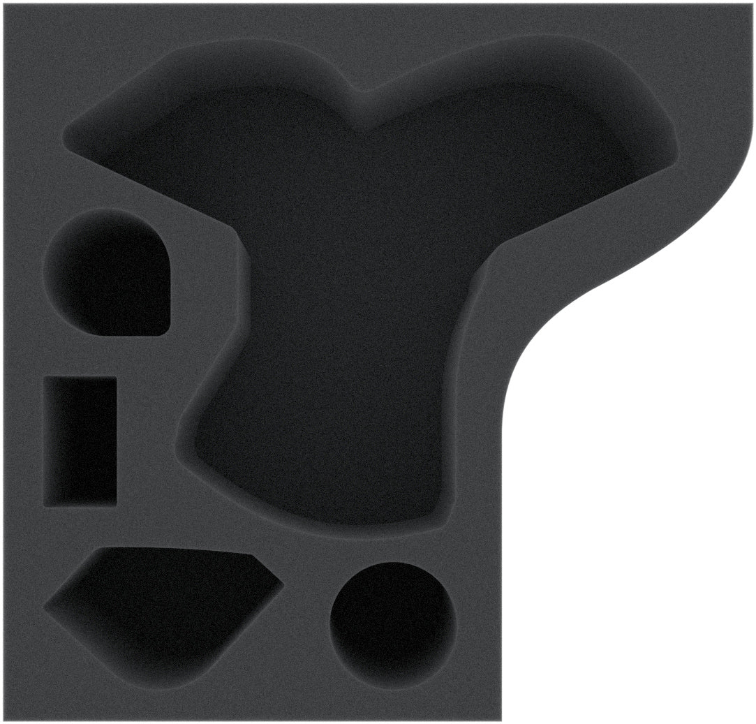 1 grand plateau en mousse avec des compartiments aux formes précises de miniatures pour cinq grandes miniatures.