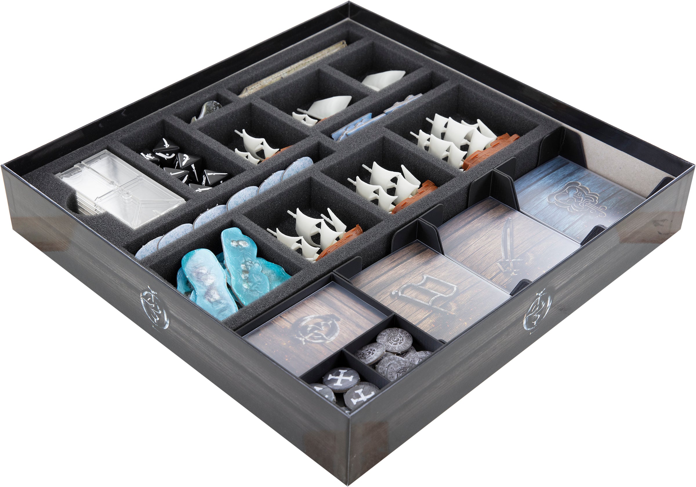 Pour que les navires restent en état de naviguer, les six figurines (sans socle) ont leur propre compartiment personnalisé. Il y a un compartiment séparé pour ranger les bases en plastique.